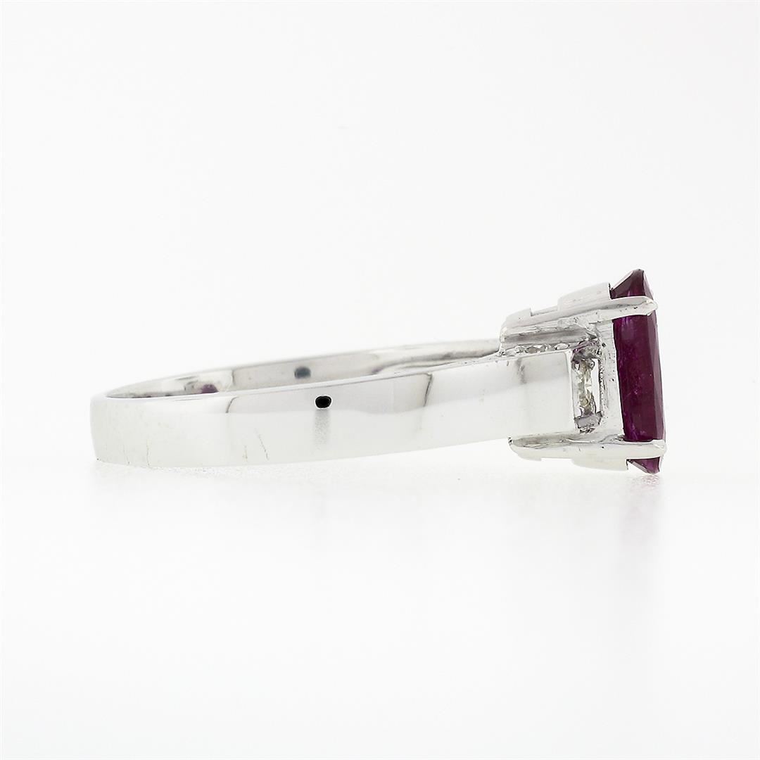 A vintage solid 18k white gold engagement ring, with 1 Gia certified oval cut natural ruby (1.38ct), Accented with 6 old transitional cut natural diamonds (H/I - SI1/SI2 ; 0.24ctw). The ring is size 7.5, weighs a total of 5.45 grams, and measures 9.3mm wide. Comes with all original relevant certifications.