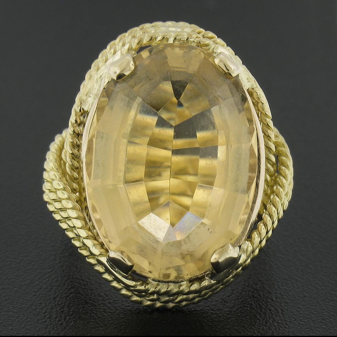 Vintage 18k Gold 10.84ct Oval Citrine Twisted Wire Frame Large Cocktail Ring