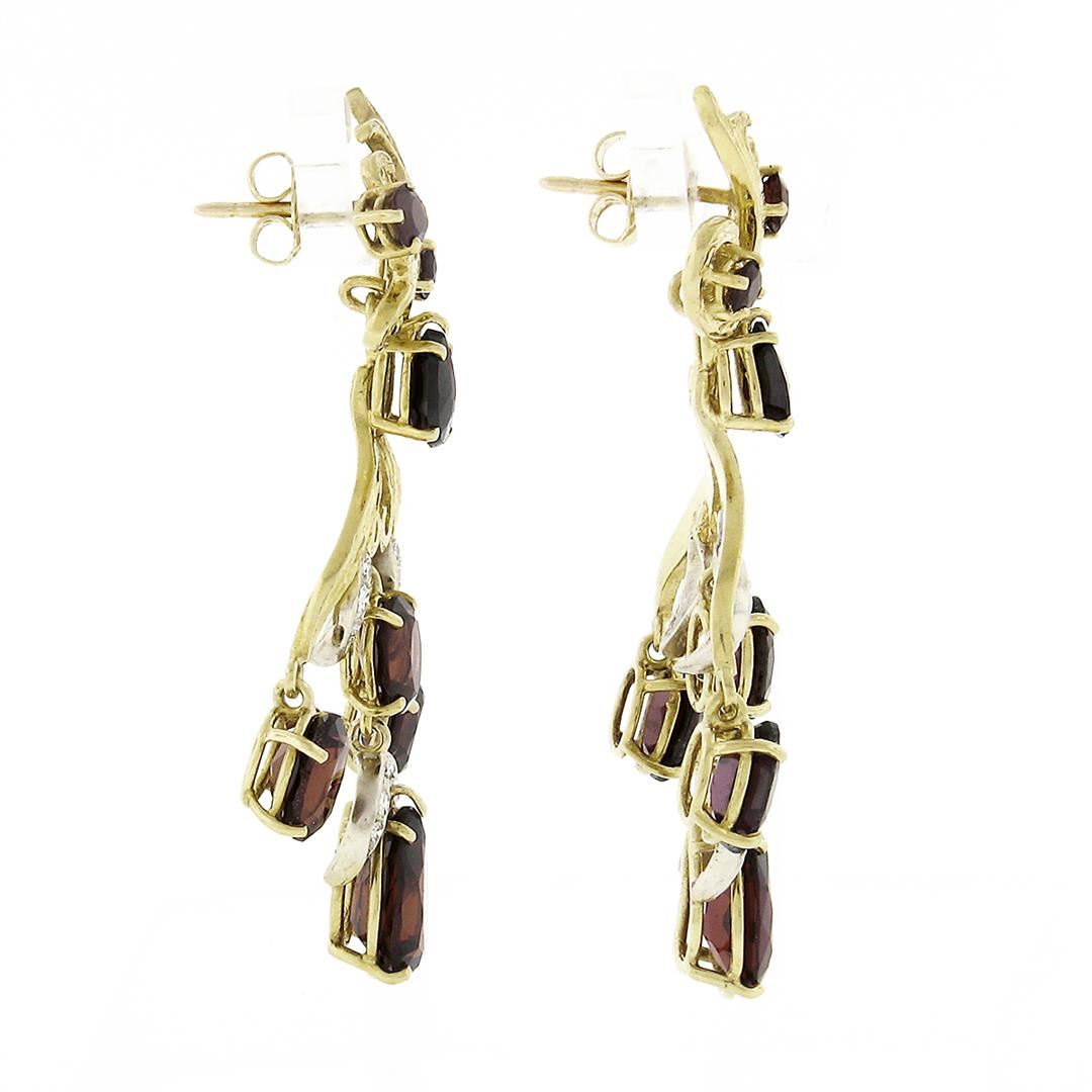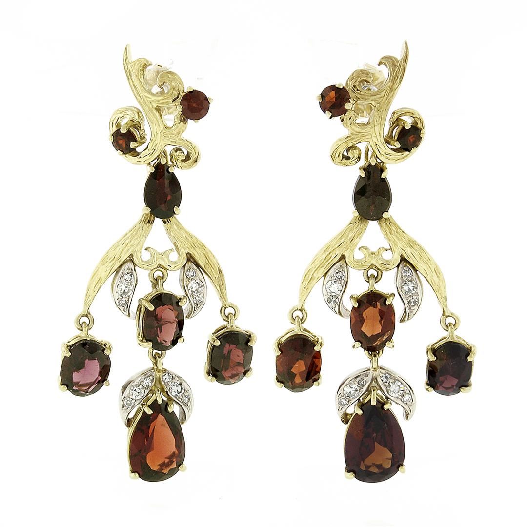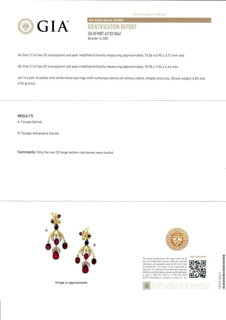 A vintage pair or solid 18k yellow gold of earrings, with 2 GIA certified pear cut natural garnets (4.17ctw), & 6 oval cut natural garnets (5.78ctw), with 2 oval rose cut natural garnets (1.26ctw), & 4 round cut natural garnets (0.52ctw ), & 12 round single with transitional cut natural diamonds (E/F - VS1/VS2 ; 0.18ctw). The earrings measure approximately 49.45x32.22mm and weigh a total of 13.81 grams.Comes with all original relevant certifications.