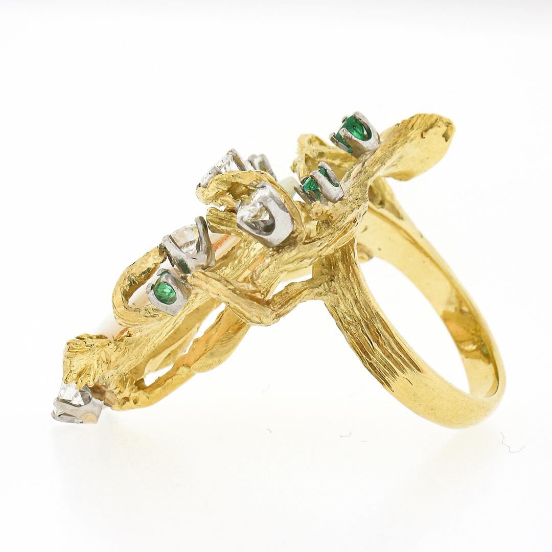 A vintage 18k yellow gold cocktail ring, with 1 GIA graded pear cabochon cut natural opal ( 20.03x11.4mm ), and 5 round brilliant cut natural diamonds (E/F - VS1 ; 0.60ctw), with 5 round brilliant cut natural emeralds (0.22ctw). The ring is size 6.0, weighs a total of 12.76 grams, and measures 34.30mm wide.Comes with all original relevant certifications.