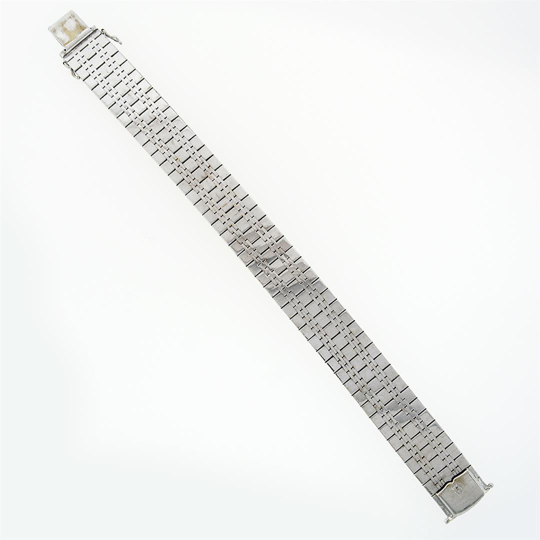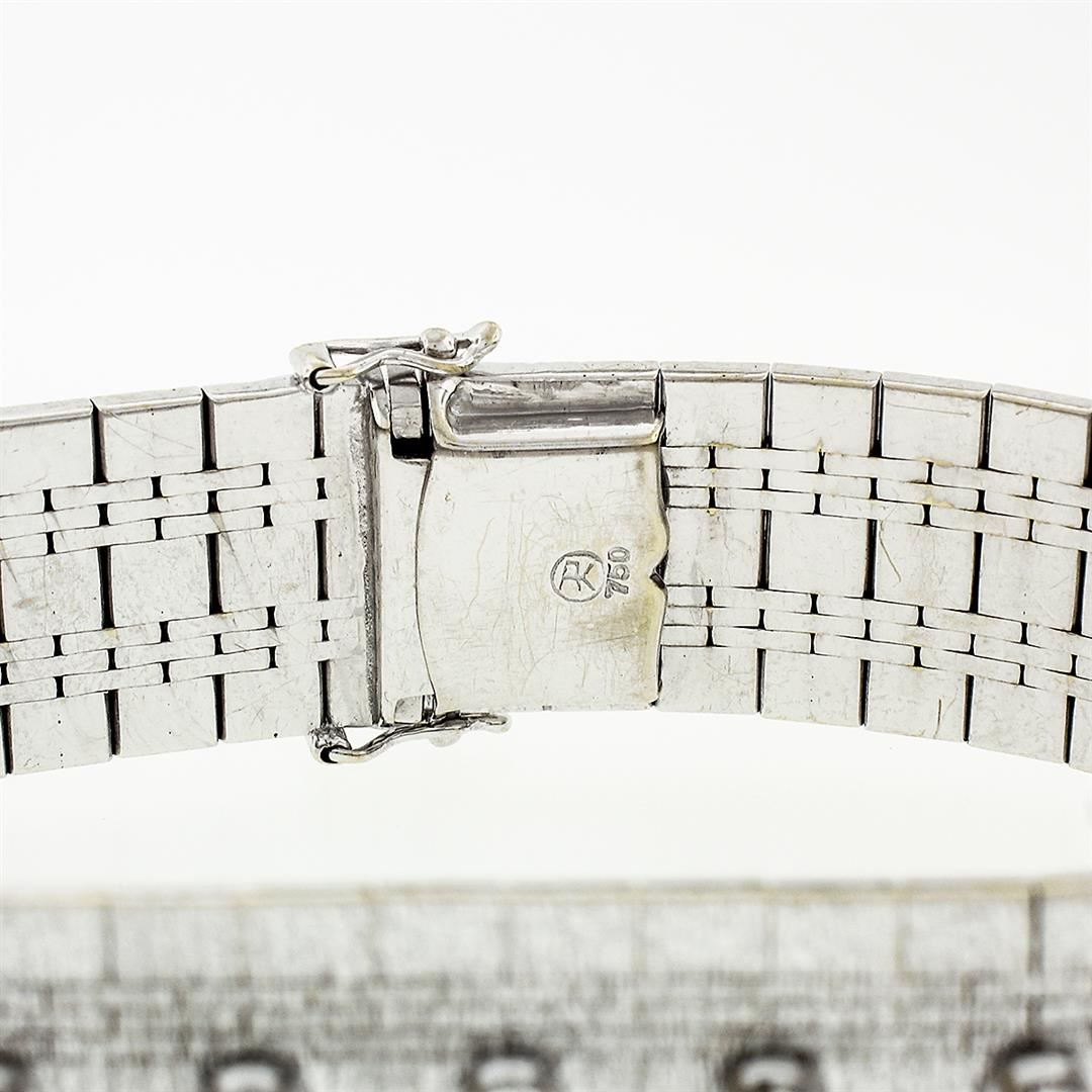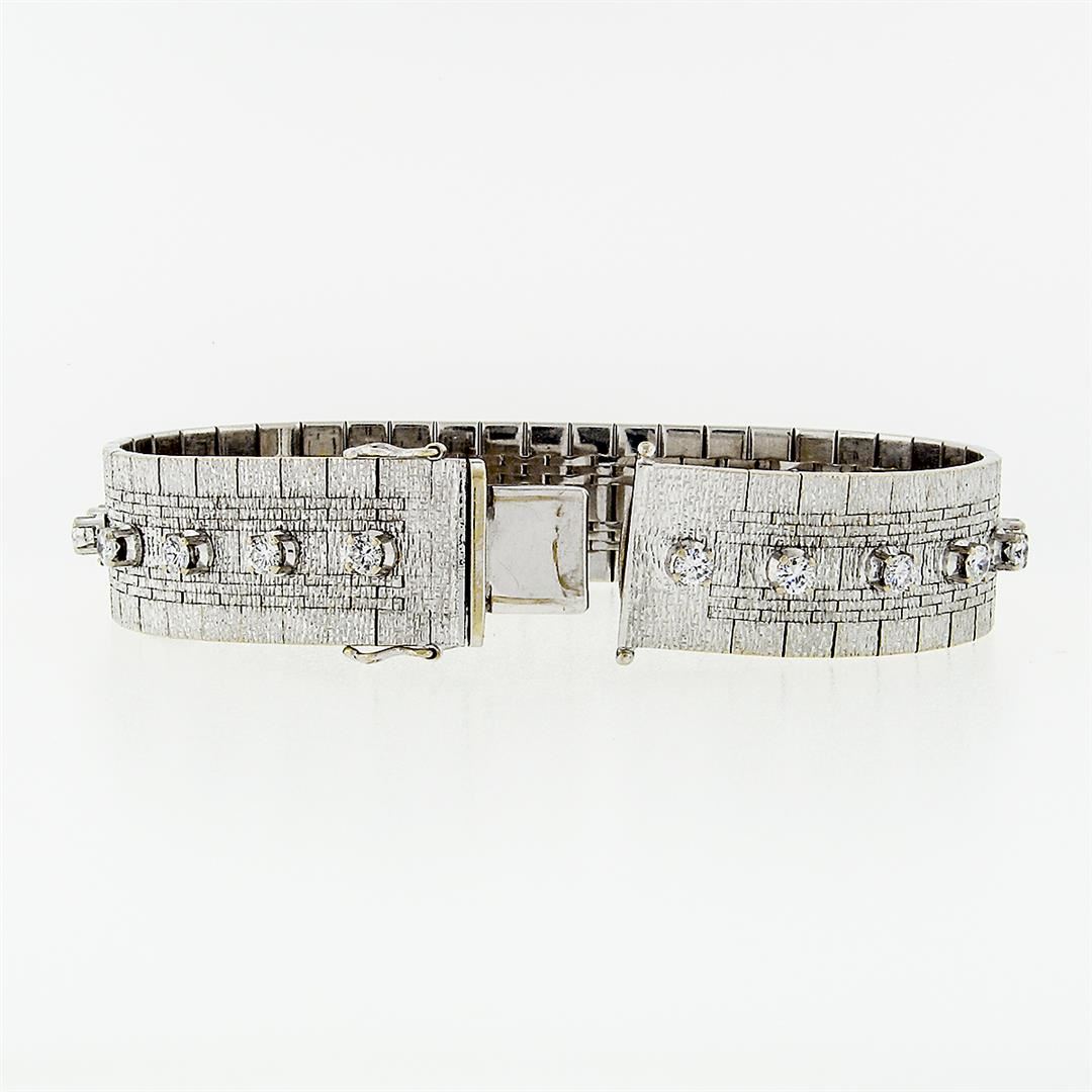 A solid 18k white gold mesh link bracelet, with 22 round brilliant cut natural diamonds (F/G - VS1/VS2 ; 2.40ctw ). It weighs a total of 60.66 grams, measures 15.17mm wide, and measures 7.25 inches in length.