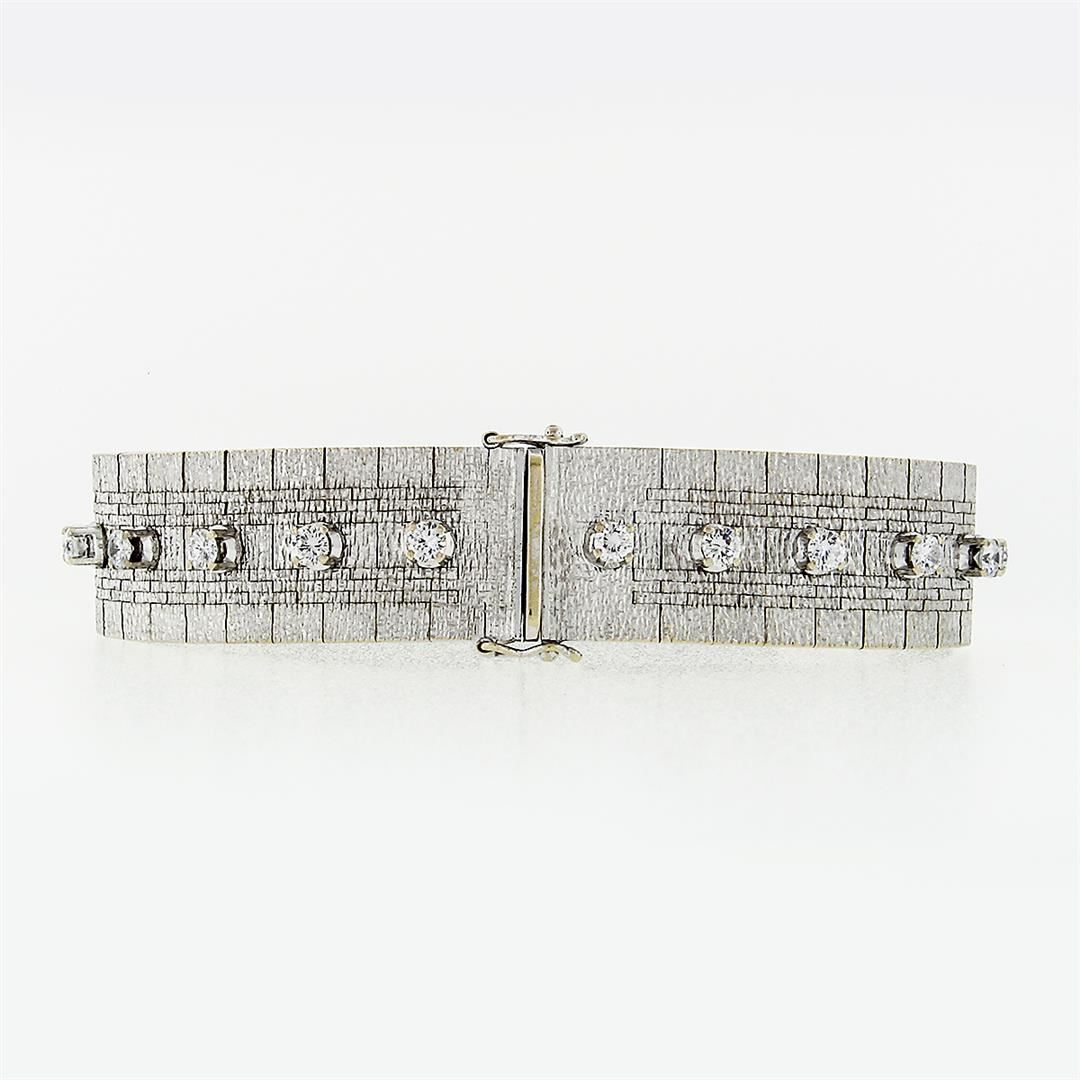 A solid 18k white gold mesh link bracelet, with 22 round brilliant cut natural diamonds (F/G - VS1/VS2 ; 2.40ctw ). It weighs a total of 60.66 grams, measures 15.17mm wide, and measures 7.25 inches in length.