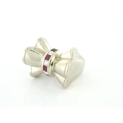 How much more could you add to this ring to refelct the "Retro" bow design. In period 18k white gold set with fine white 0.30tcw VVS-G diamonds and natural 0.50tcw ruby. Classic style for the collector and those that can be bold. This fabulous vintage ring weighs 11.1 grams and is a size 6.75 and can be sized to fit. See our ring sizing policy for details. Appraisal priced at $1499.00.
