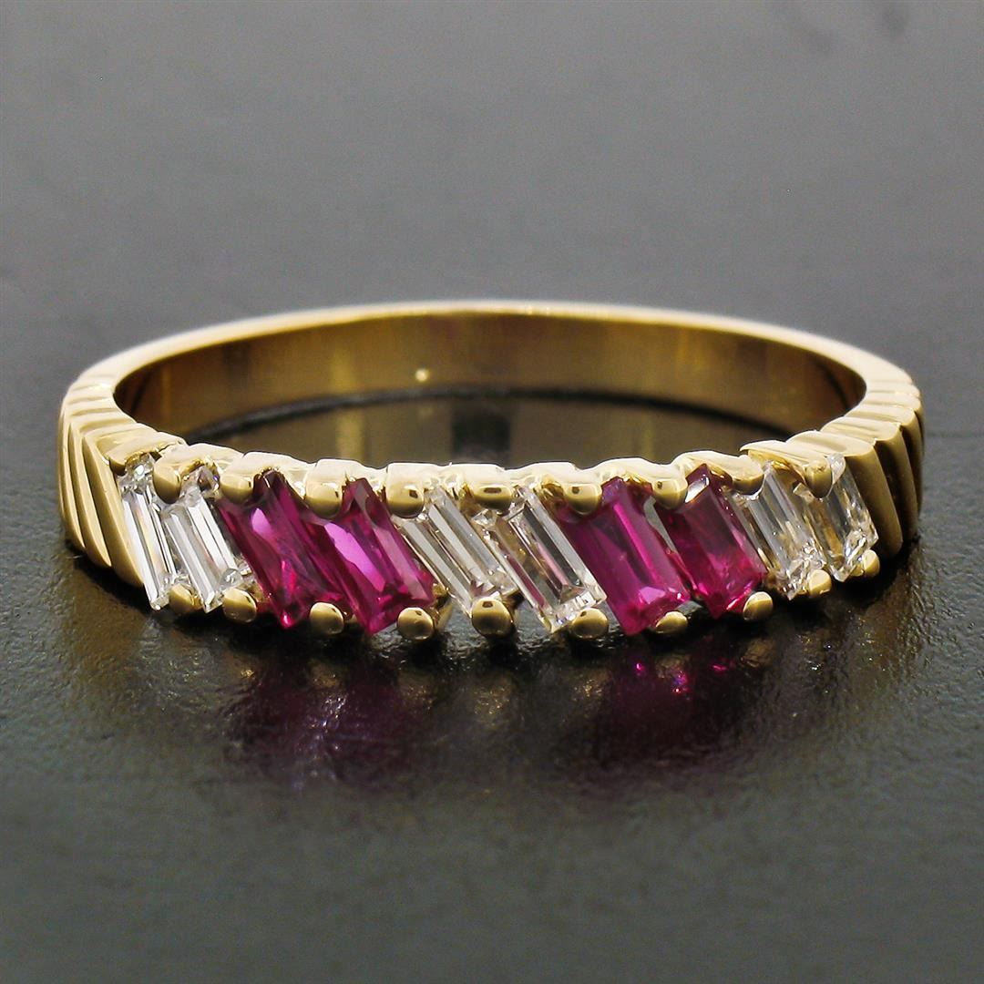 Vintage 18k Yellow Gold 0.75 ctw Baguette Diamond and Ruby Band Ring