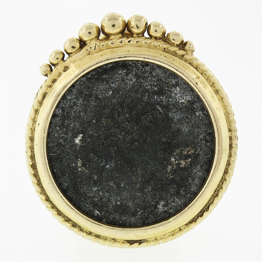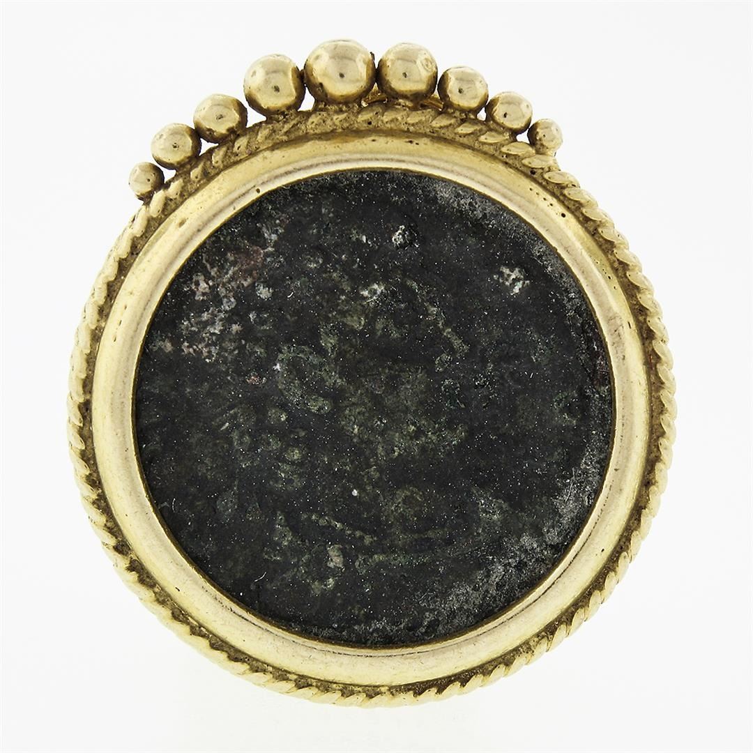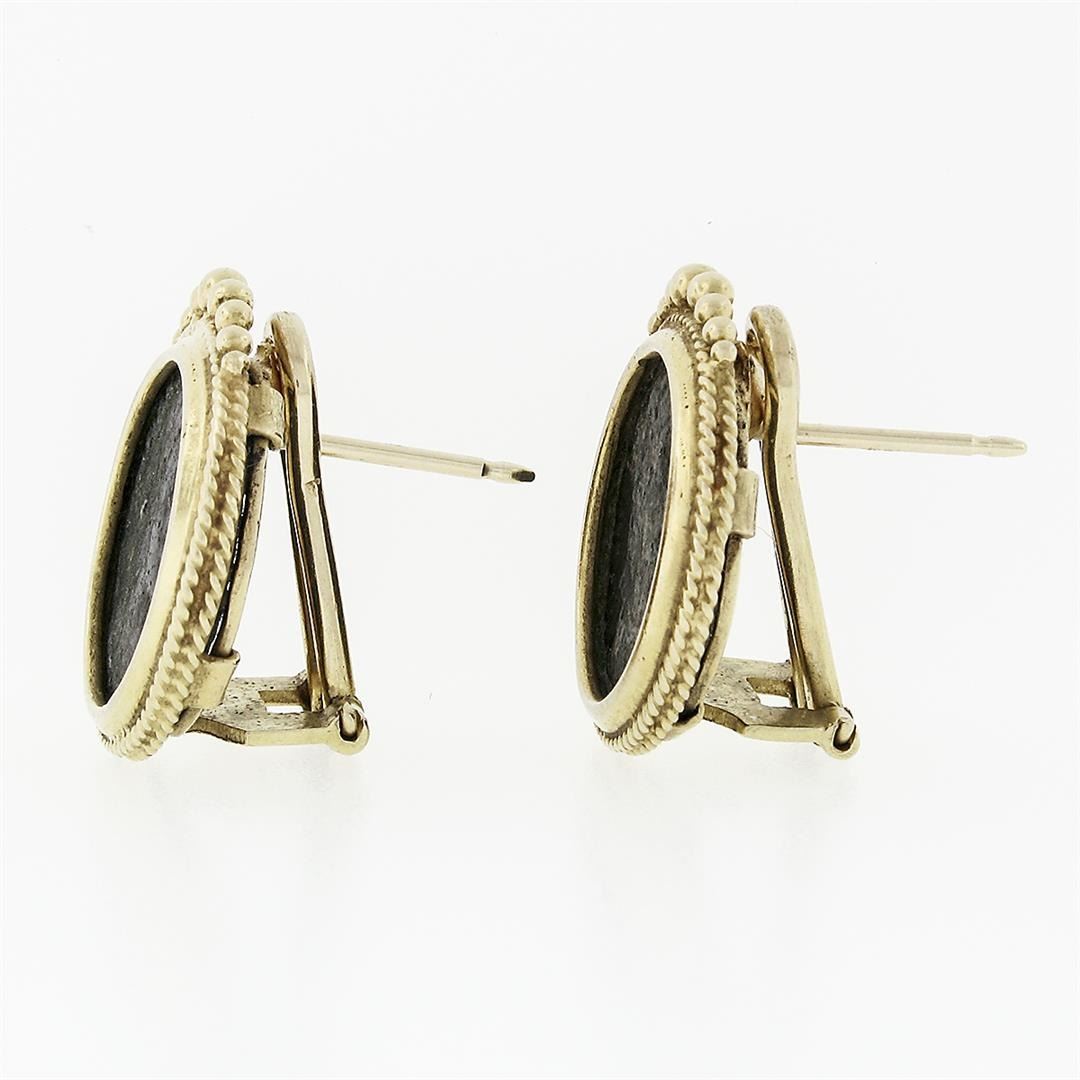 A vintage solid 18k yellow gold earrings, with 2 round shape ancient coins. The earrings measure approximately 20.24x18.34mm and weigh a total of 14.43 grams.