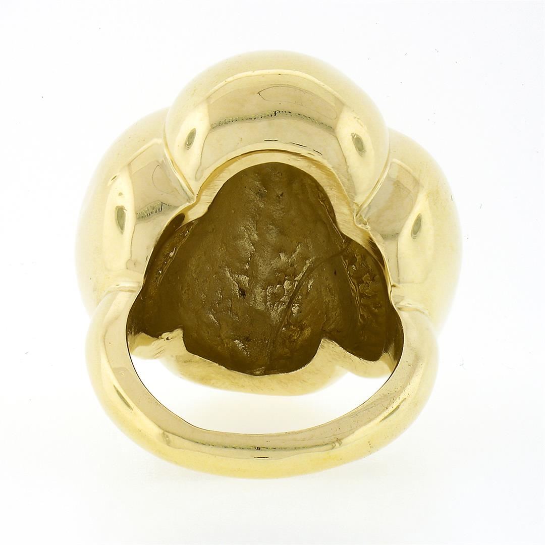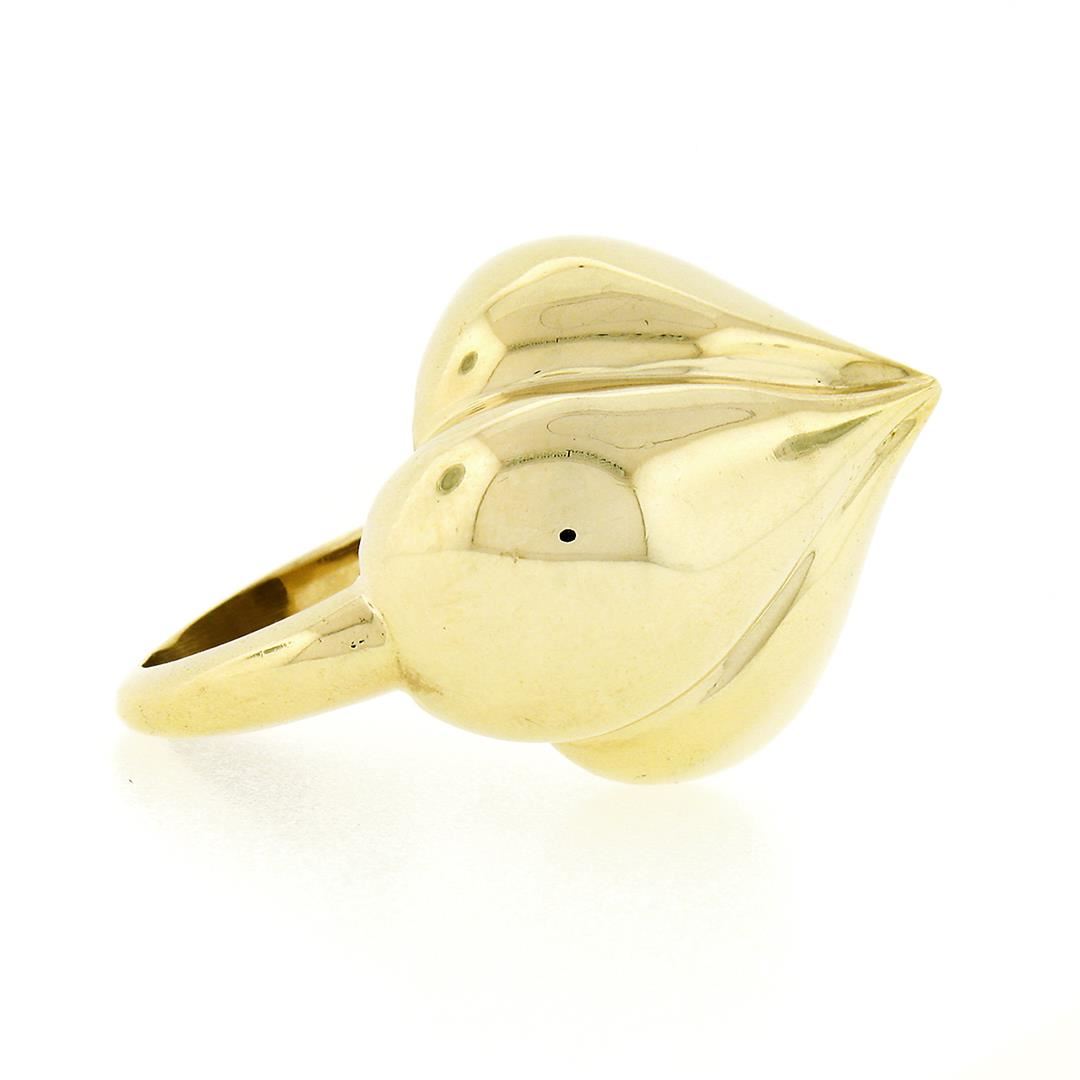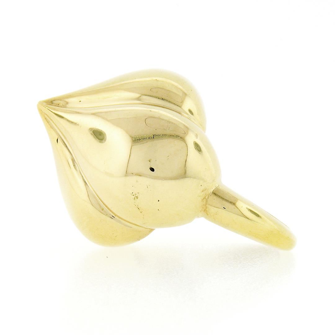 A vintage solid 18k yellow gold grooved ring. The ring is size 5.5, weighs a total of 15.69 grams, and measures 24.30mm wide.