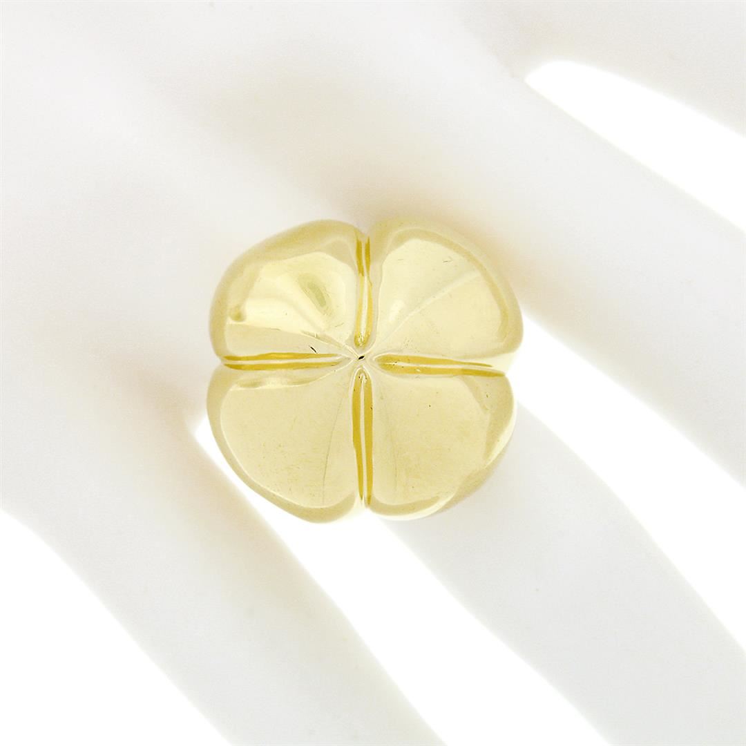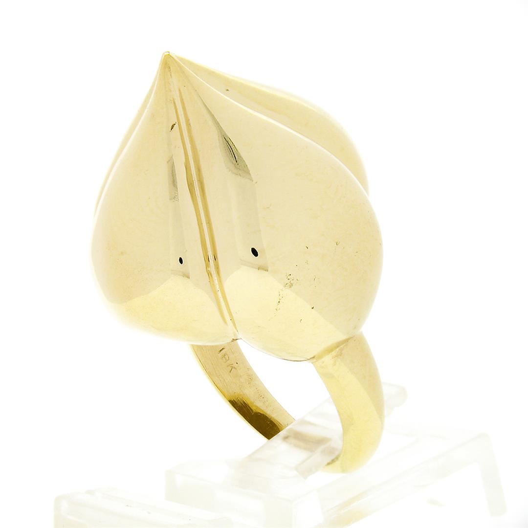 A vintage solid 18k yellow gold grooved ring. The ring is size 5.5, weighs a total of 15.69 grams, and measures 24.30mm wide.