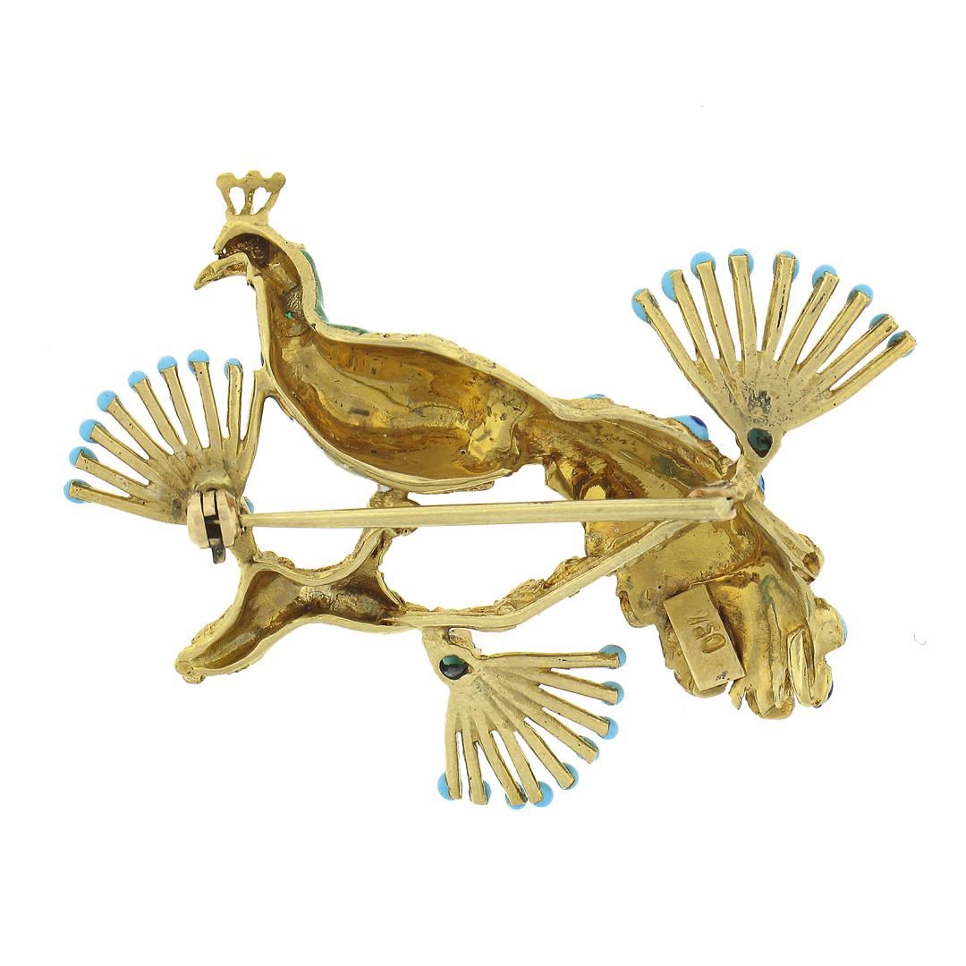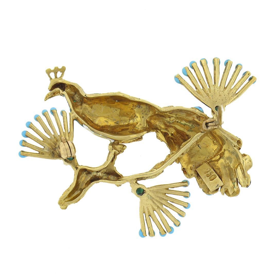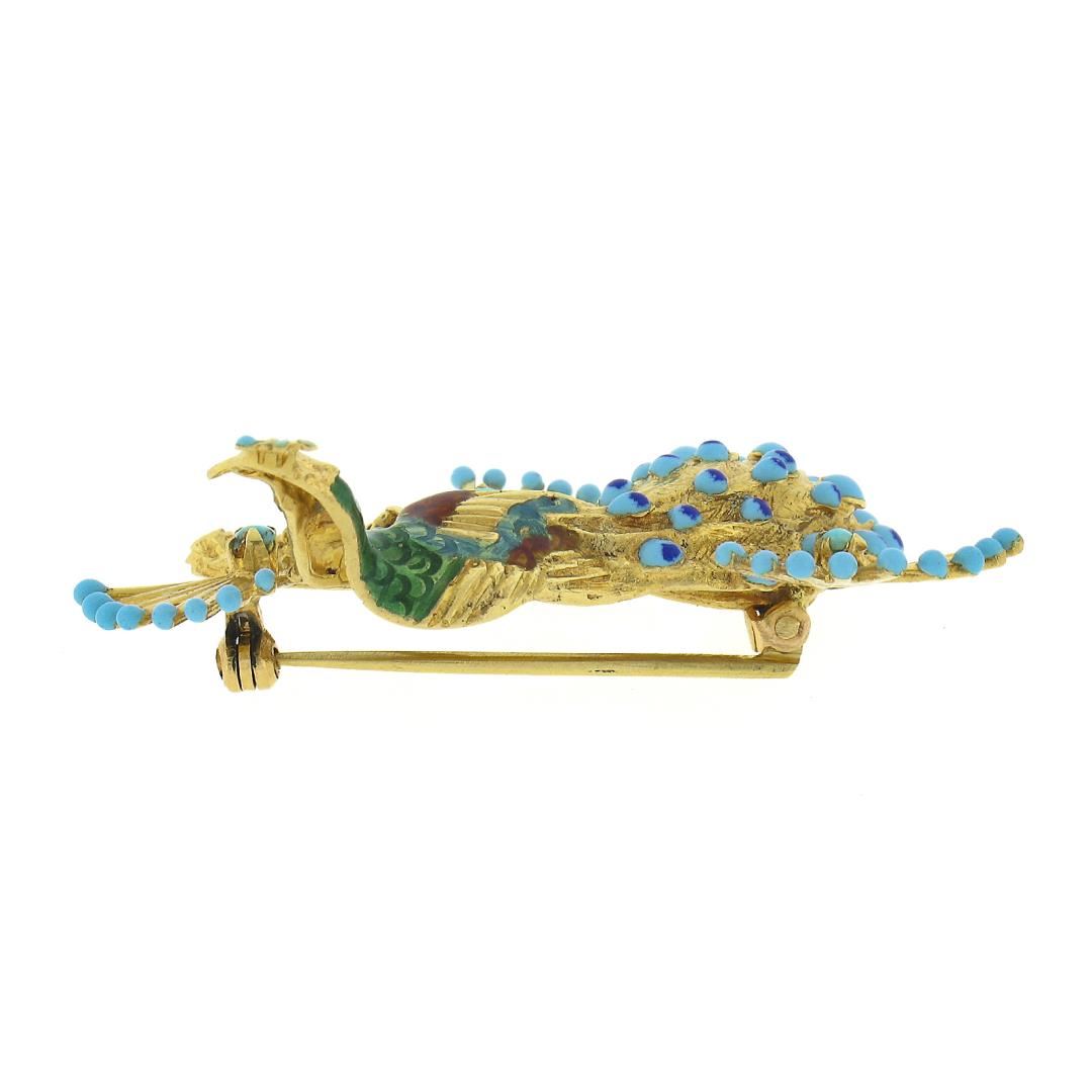 A vintage solid 18k yellow gold & multi colors enamel work bird brooch. Measures 35.1x47.2mm and weighs a total of 9.10 grams.