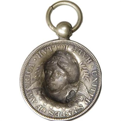 <B>Vintage 1914 Barber Half Dollar Pop-Out With Loop.</B></I> Silver, 30 mm. Vintage U.S. 1914 Barber half dollar pop-out circa 1915, Pan-Pacific Exposition era. Not a modern piece. <BR> <BR><BR><b>Shipping:</b> Coins & Currency (<a target="_blank" href="http://www.heritageauctions.com/common/shipping.php">view shipping information</a>)