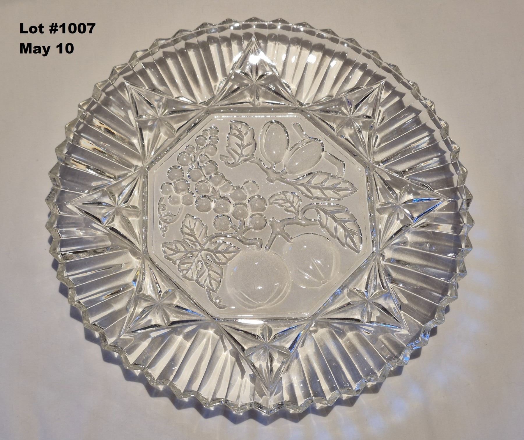 Vintage 1940's Federal Glass 11" Platter - Pioneer Fruit Pattern - Crimped Glass with Ruffled Edge