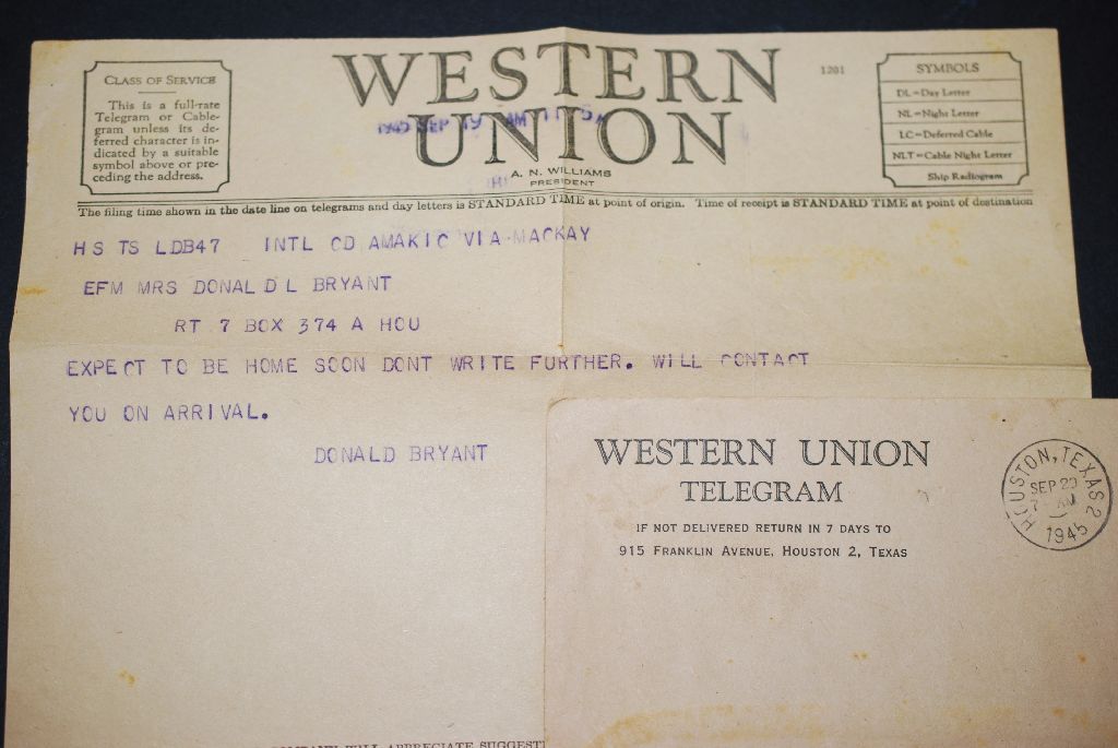 Vintage 1945 Western Union Telegram Communication With Envelope; EST. $5-10