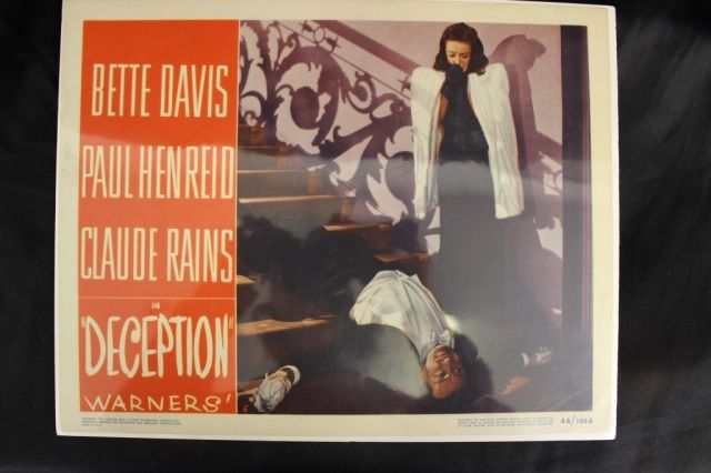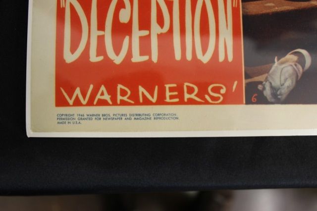 Vintage 1946 movie print "Deception" in color with a scene shown on print. This film featured Bette Davis, Paul Henreid, and Claude Rains.