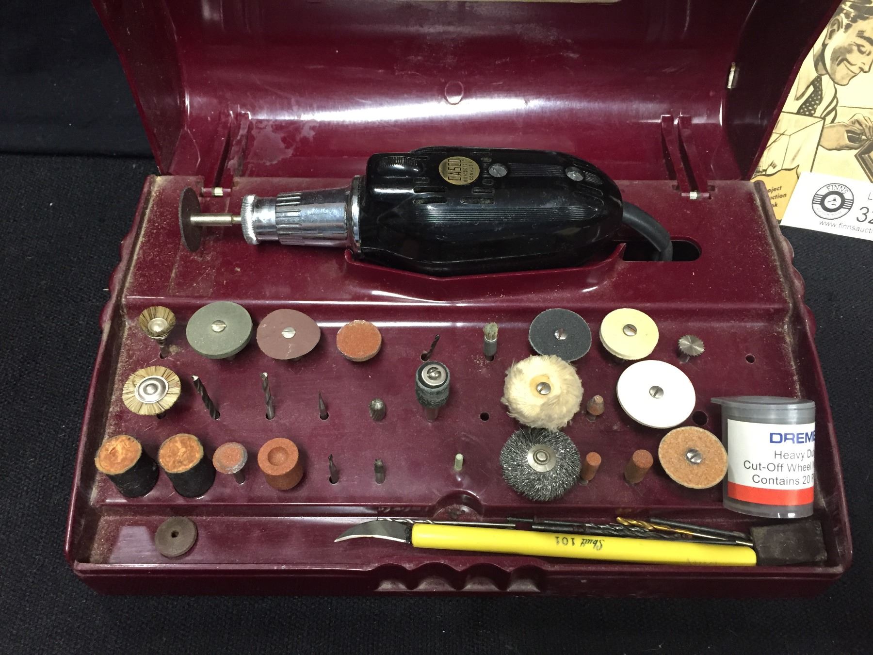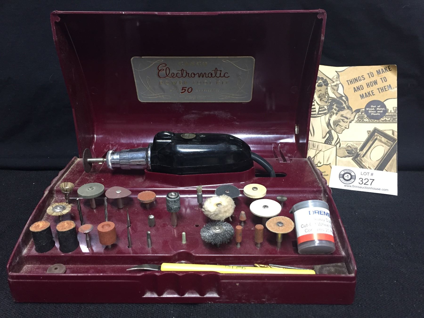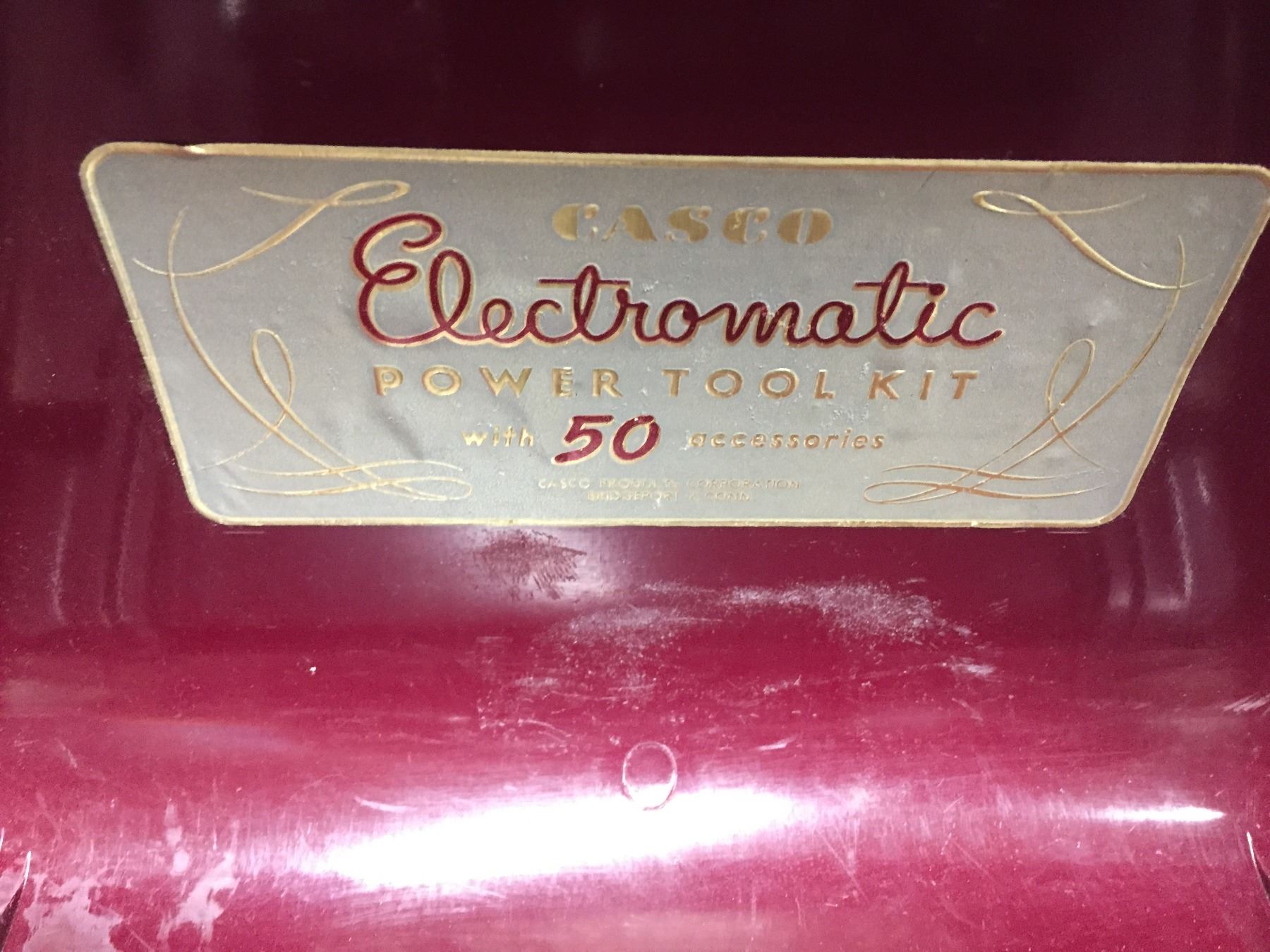 Vintage 1947 Casco Electric Hand Power Tool in Original Case with Bits, Parts and Book. Grinder/Dremmel