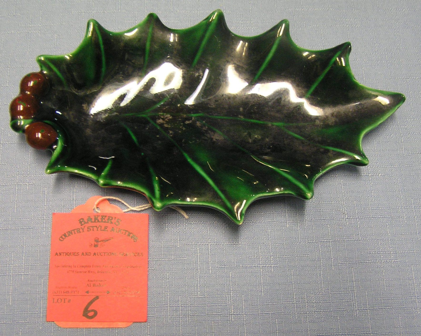 Vintage 1950's leaf shaped art pottery candy dish est. value $30.00-$35.00