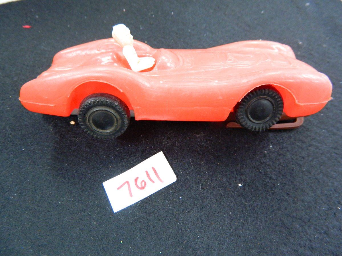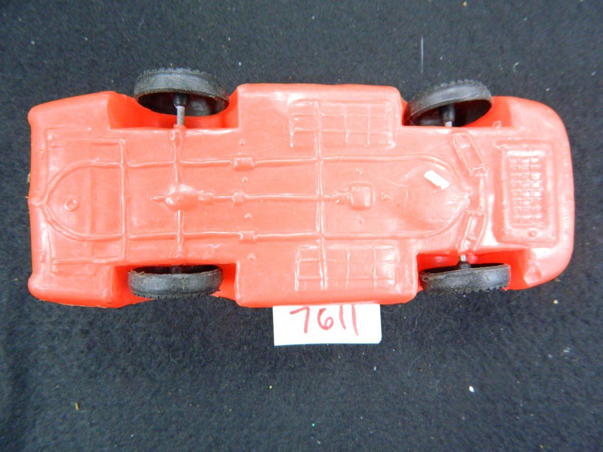 Vintage 1950's soft rubber race car with driver, #7, made in Hong Kong, 5" in length