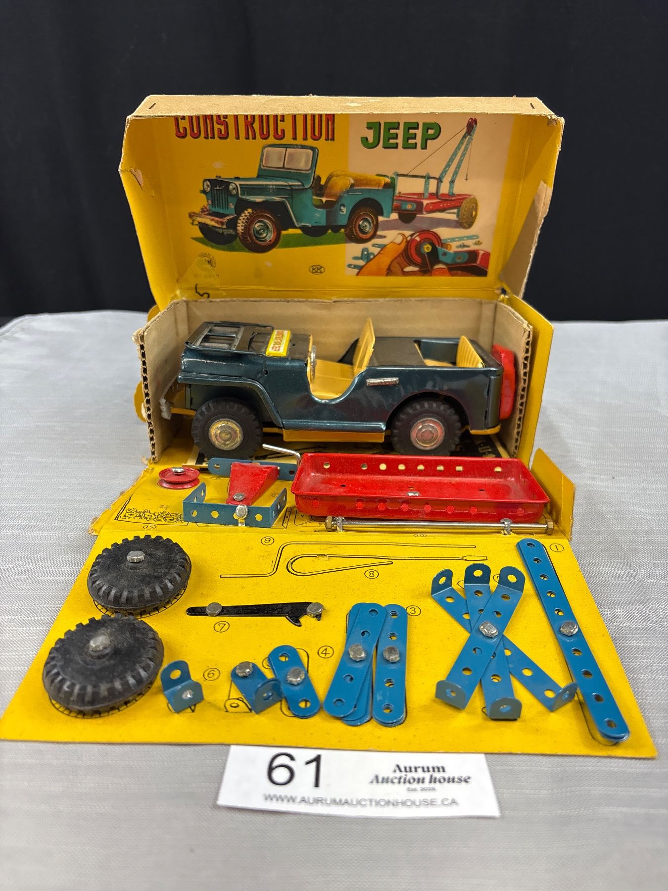 Vintage 1960s Japan Tin Construction Jeep in Original Box