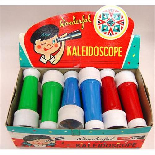 Vintage 1960's Kaleidoscope Display, has 12 4 1/2" plastic kaleidoscopes in the display..