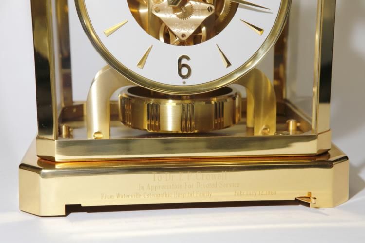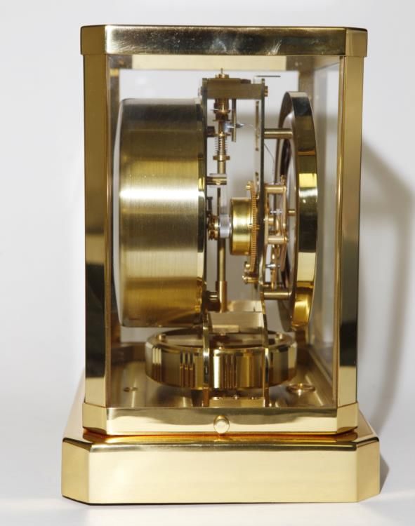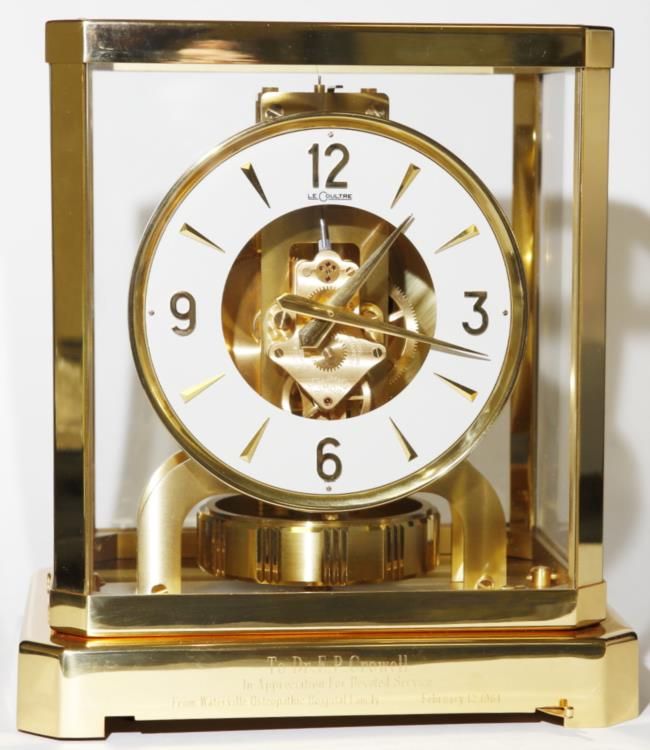 We have for sale a stunning Vintage 1964 Jaeger LeCoultre ATMOS Mantle Clock RUNS. The clock adjustments wind properly and the clock is in good running condition, but has not been tested for accuracy. This wonderful timepiece would look splendid on your mantle or desk!