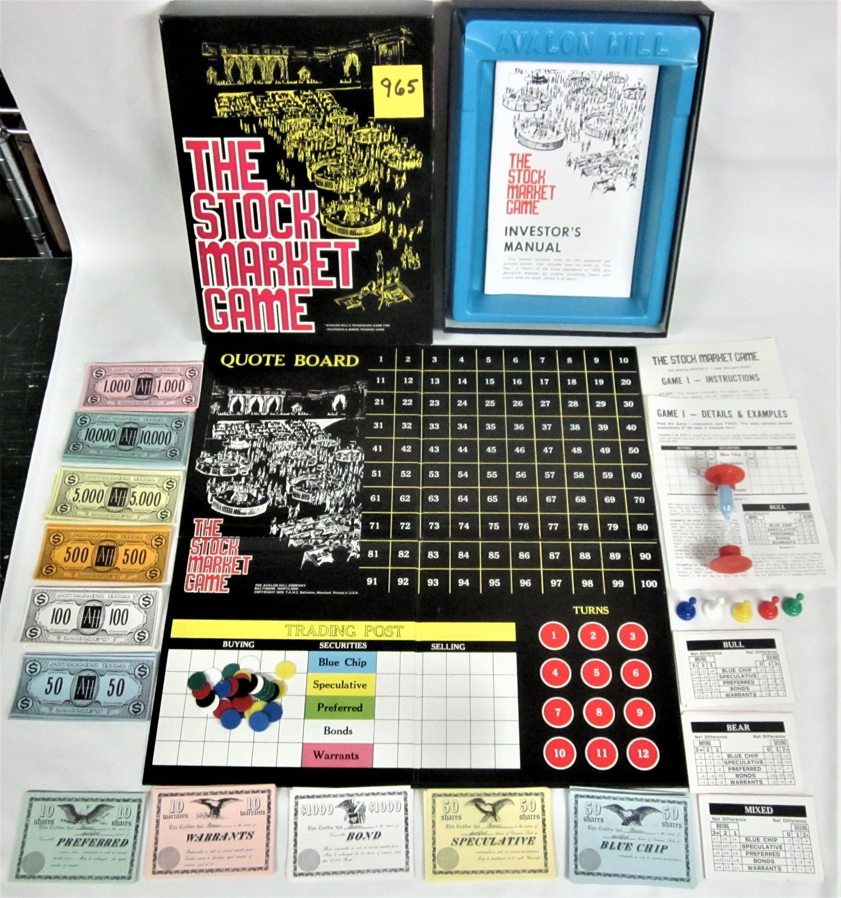 Vintage 1970 Avalon Hill Bookshelf Game #805 THE STOCK MARKET Game