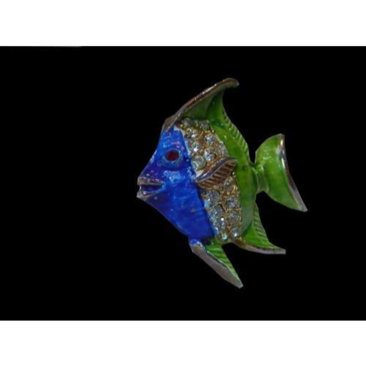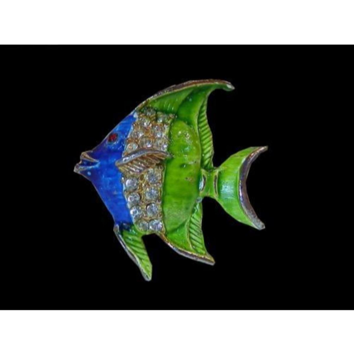 Vintage 1970's enamel with inset rhinestones brooch pin, in the form of a tropical fish. Approx 1" X 1". 10667-052918-EB-23099