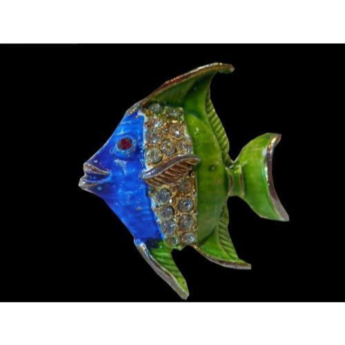 Vintage 1970's enamel with inset rhinestones brooch pin, in the form of a tropical fish. Approx 1" X 1". 10667-052918-EB-23099