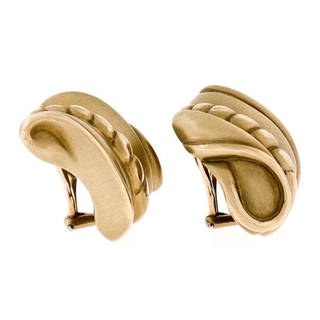 A vintage solid 18k gold pair of wavy clip on earrings by Kieselstein Cord.The earrings measure approximately 23.30x21.20mm and weigh a total of 28.52grams.