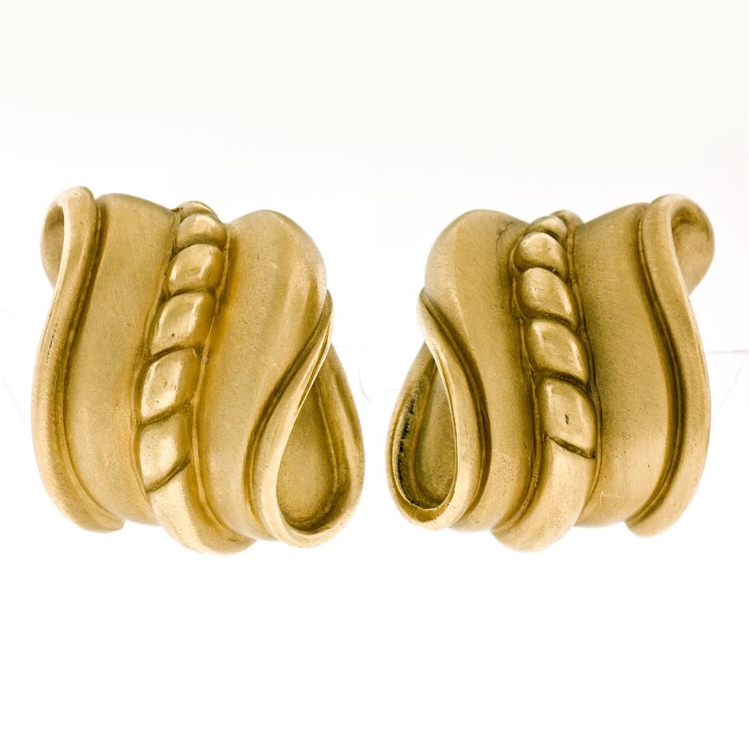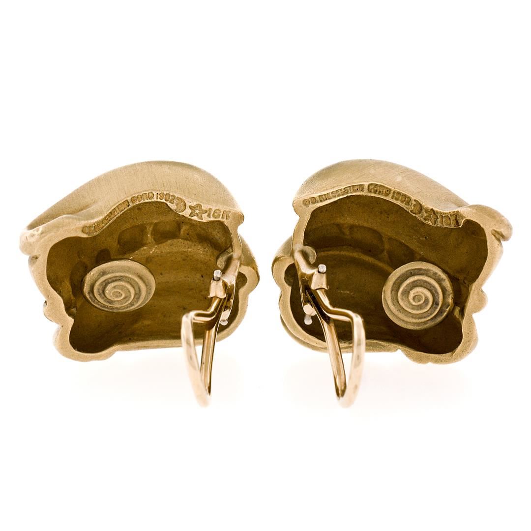 A vintage solid 18k gold pair of wavy clip on earrings by Kieselstein Cord.The earrings measure approximately 23.30x21.20mm and weigh a total of 28.52grams.
