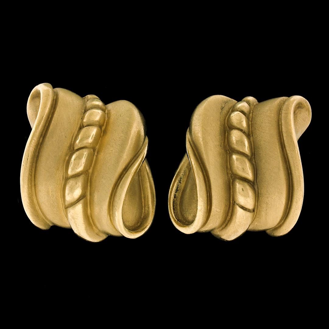 A vintage solid 18k gold pair of wavy clip on earrings by Kieselstein Cord.The earrings measure approximately 23.30x21.20mm and weigh a total of 28.52grams.