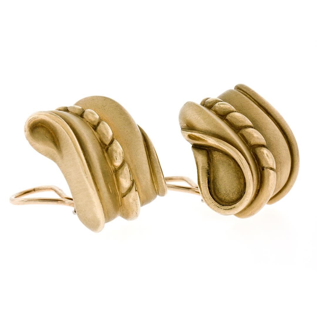 A vintage solid 18k gold pair of wavy clip on earrings by Kieselstein Cord.The earrings measure approximately 23.30x21.20mm and weigh a total of 28.52grams.