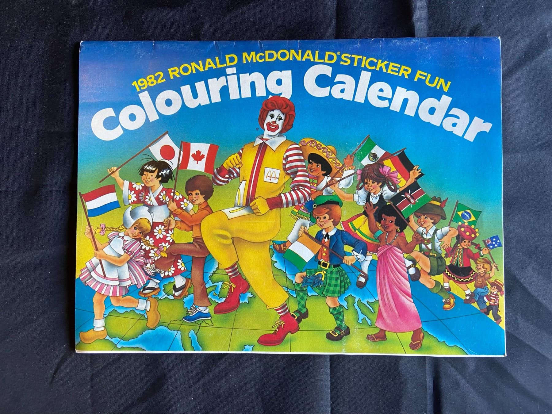 Vintage 1982 Ronald Mcdonald Sticker Fun Colouring Calendar