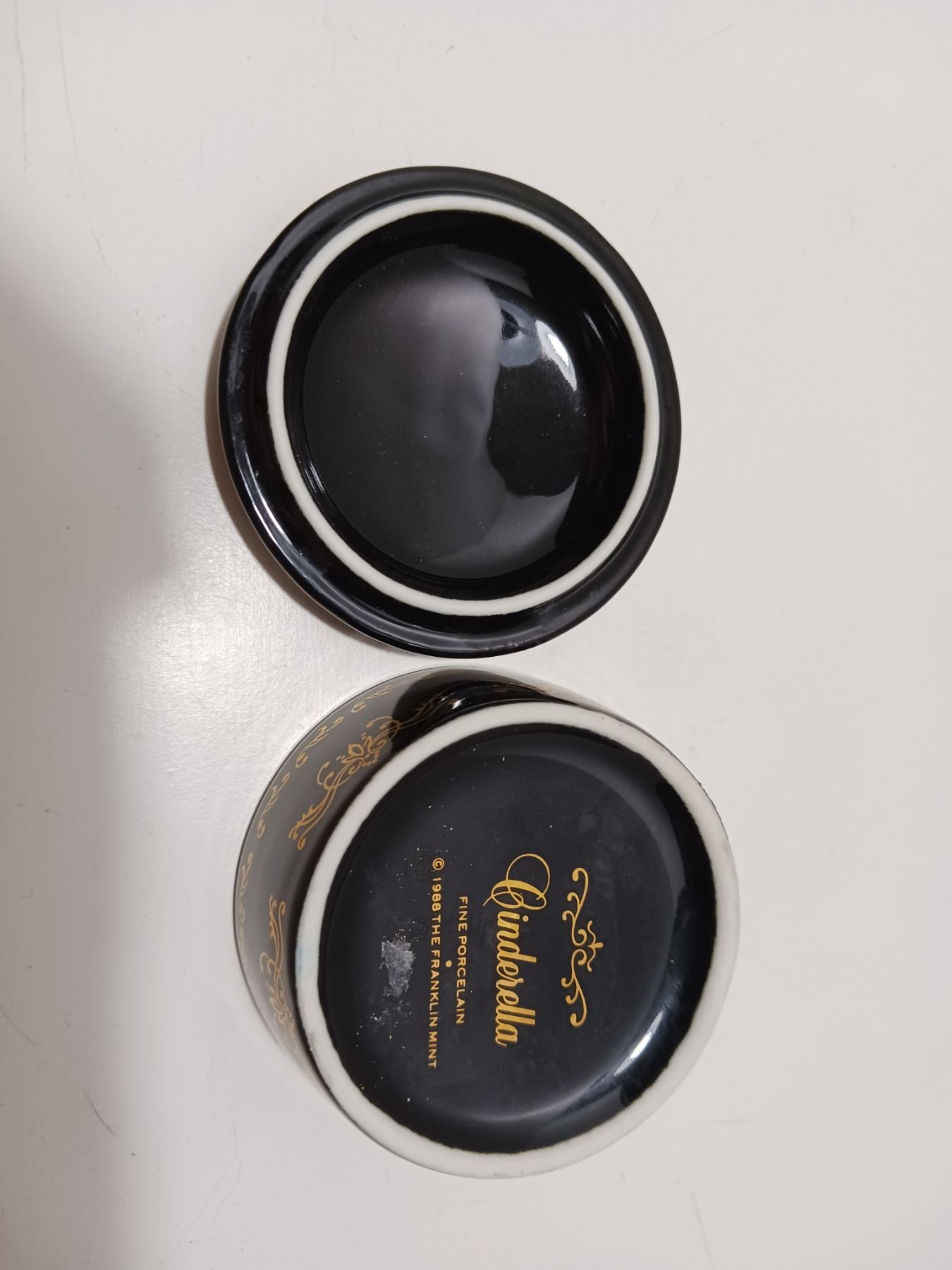 Vintage 1988 Franklin Mint, Cinderella Music Box, Fine Porcelain Trinket Box *Approximate* 2.5"D 1.5"H