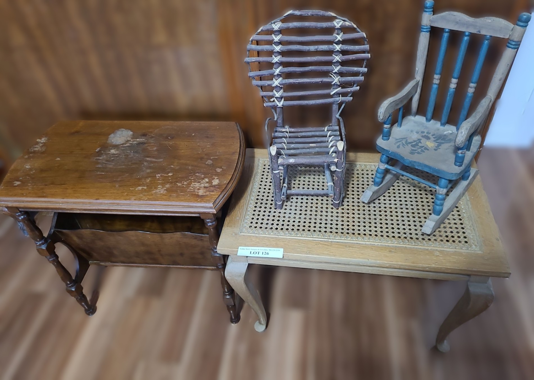 Also Incl Rattan Side Table 24 1/2 w 14 1/2 d 18 h and 2 Minature Chairs