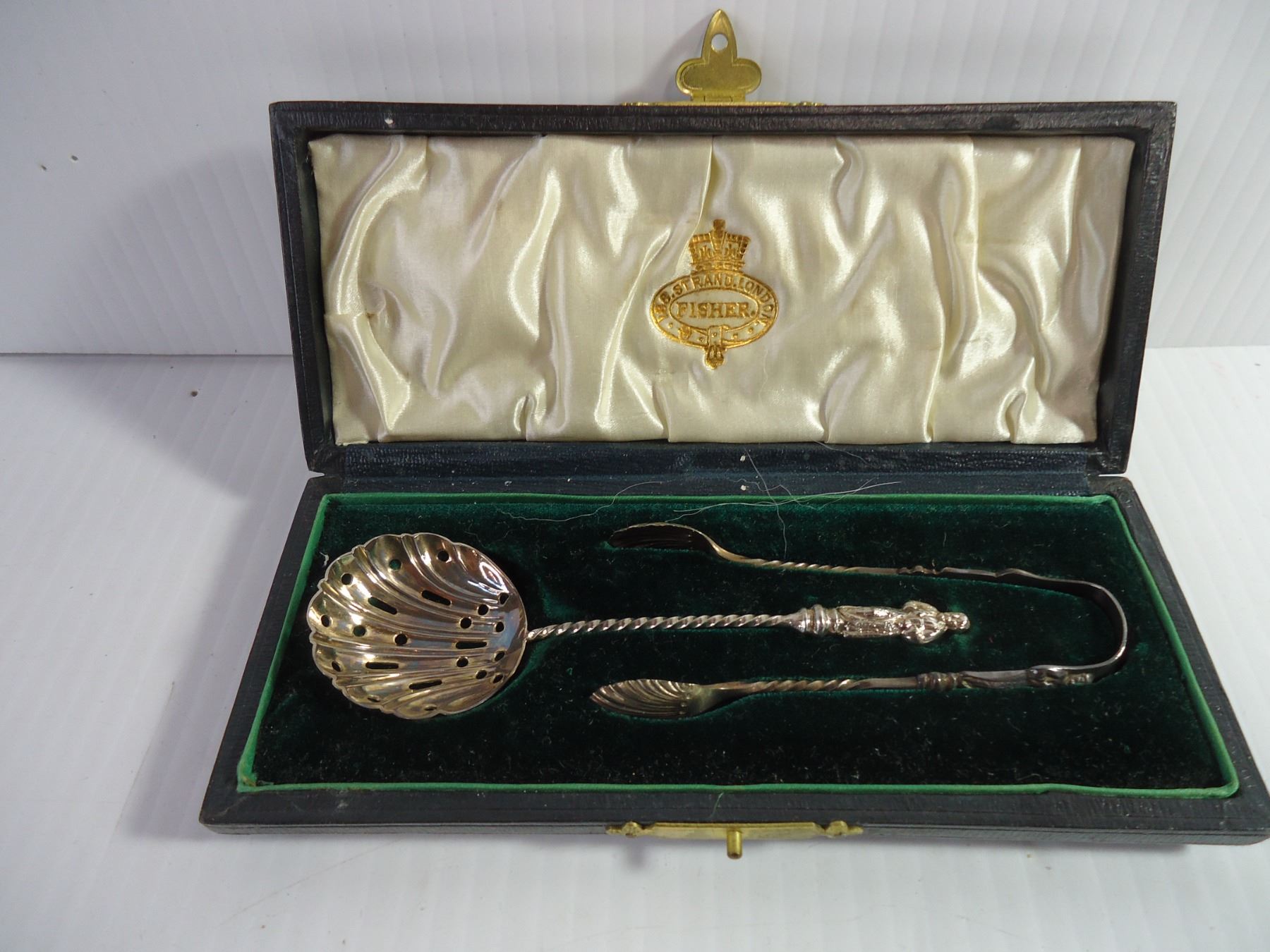 Vintage (2) Piece Sugar Serving Set-Sifter and Tongs in Original Case