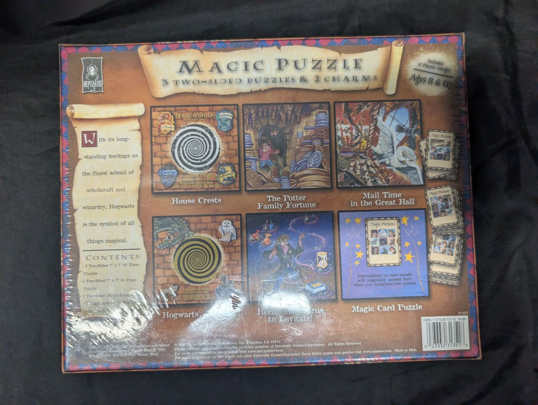 Vintage 2000s Magic Puzzles 3 Two- Sided Puzzles and 2 Charms Sealed