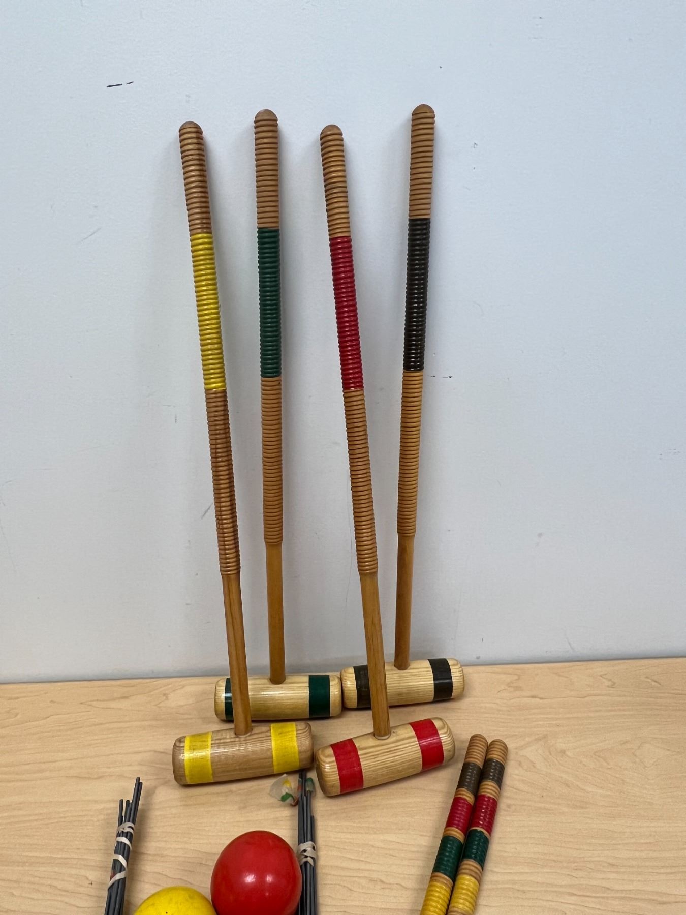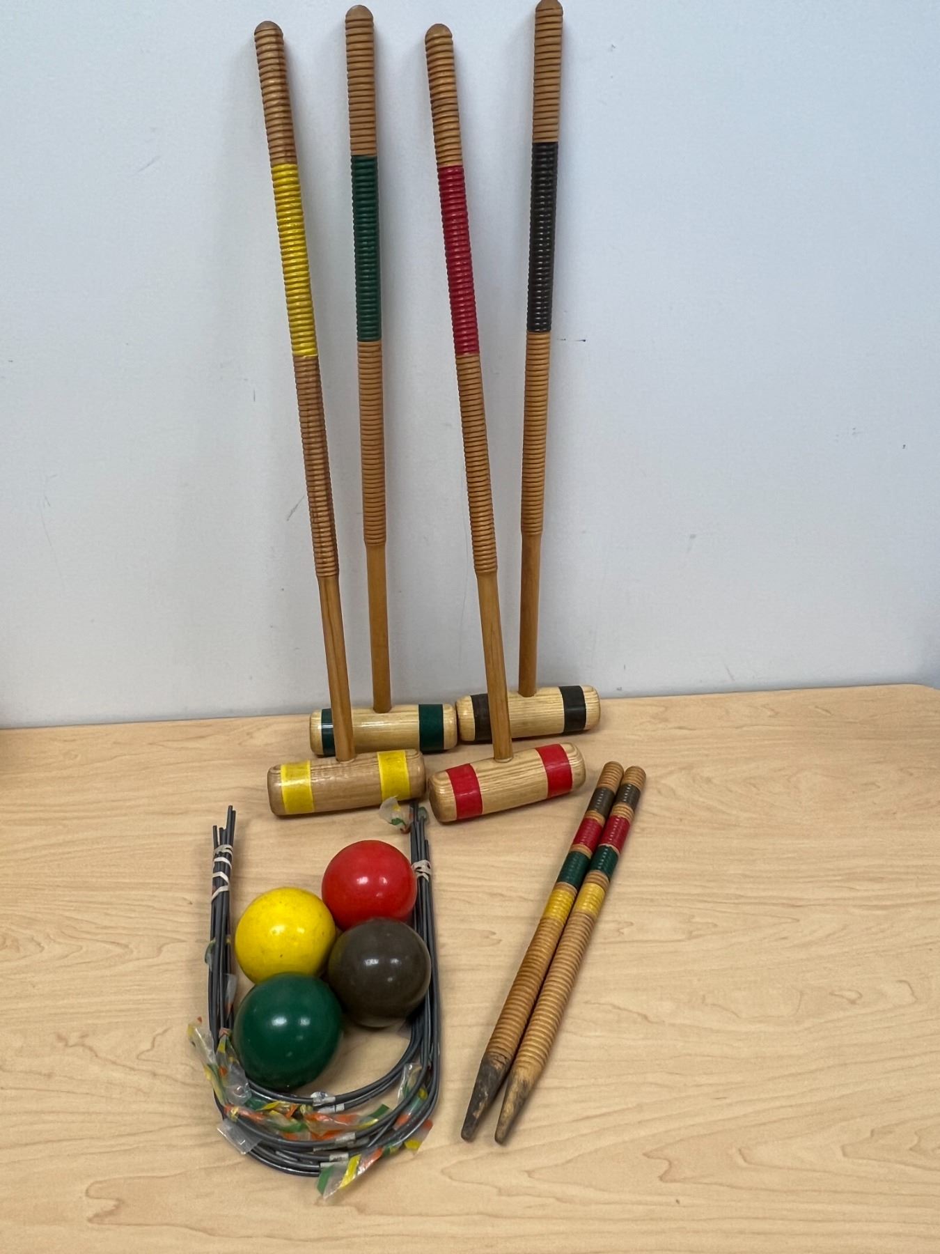 Vintage 4 Player Wooden Croquet Set as pictured - nice overall condition