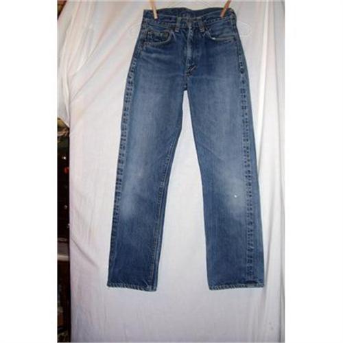 Fabulous but small in size, 4th edition, 1947/48 Big E Levis. In great condition, only one small hole below the left knee about the size of a dime, and that has not worn completely through, no stains, broken in just right. The jeans measure 36 inches from waist to leg hem, 24 inches in the waist, and 29 inches in the leg inseam. Made for a youth, or Tinker Bell. I hope you can see the picture of the red tag, that says LEvis. I don't have a swanky camera, just a kodak. The writing on the leather patch on the back is just about worn off, you can see Levi Straus and Co., that is about all. Thanks for shopping in the Land of Enchantment!