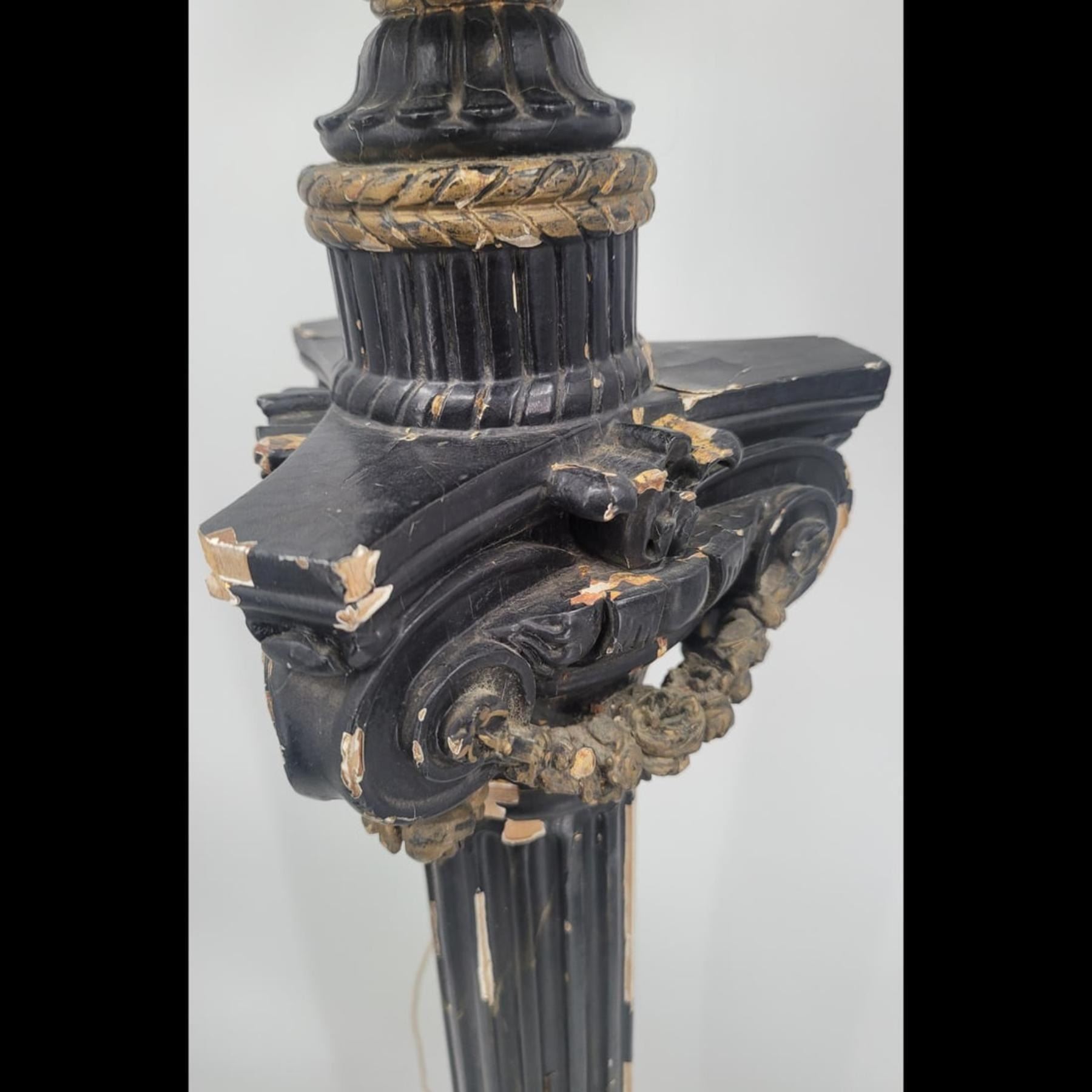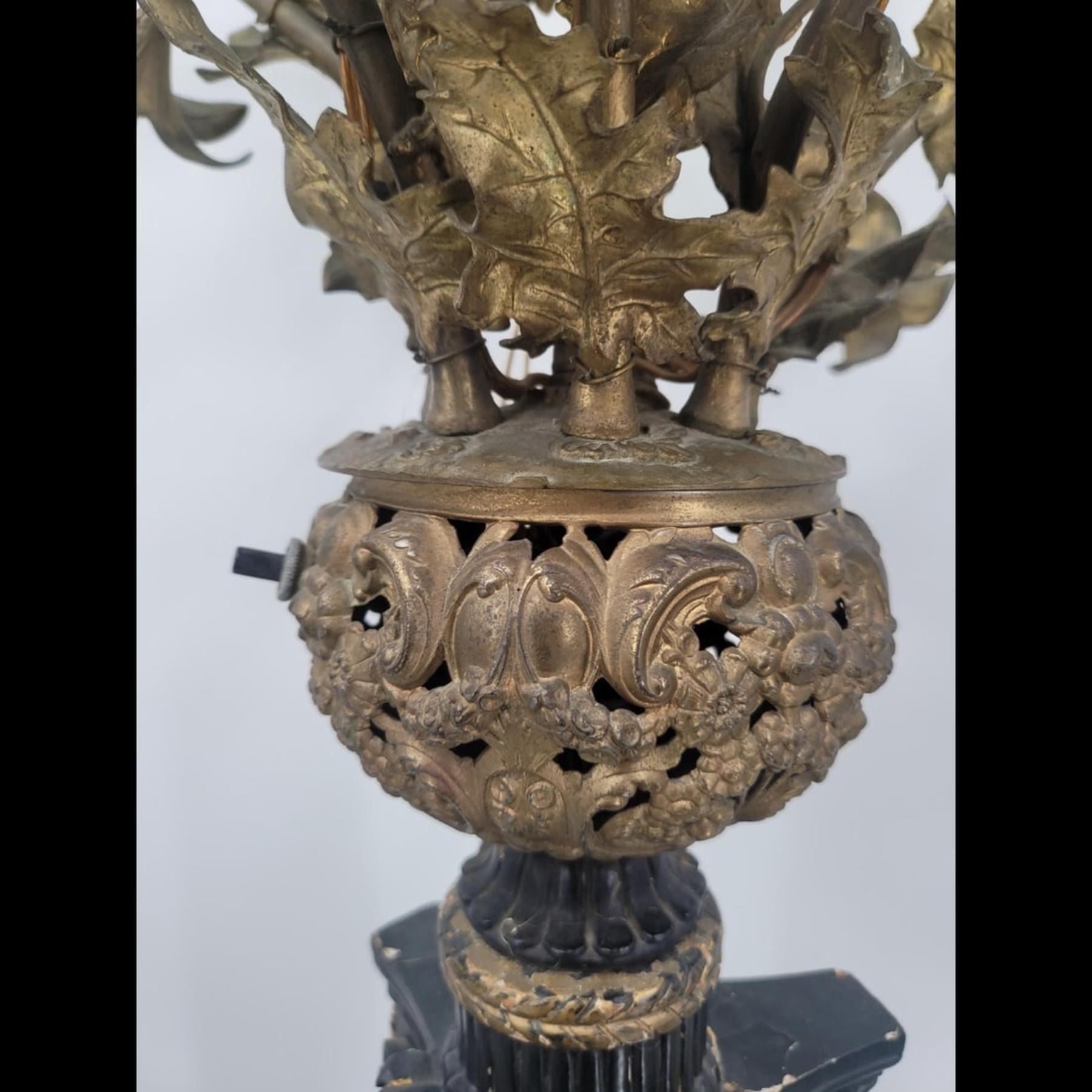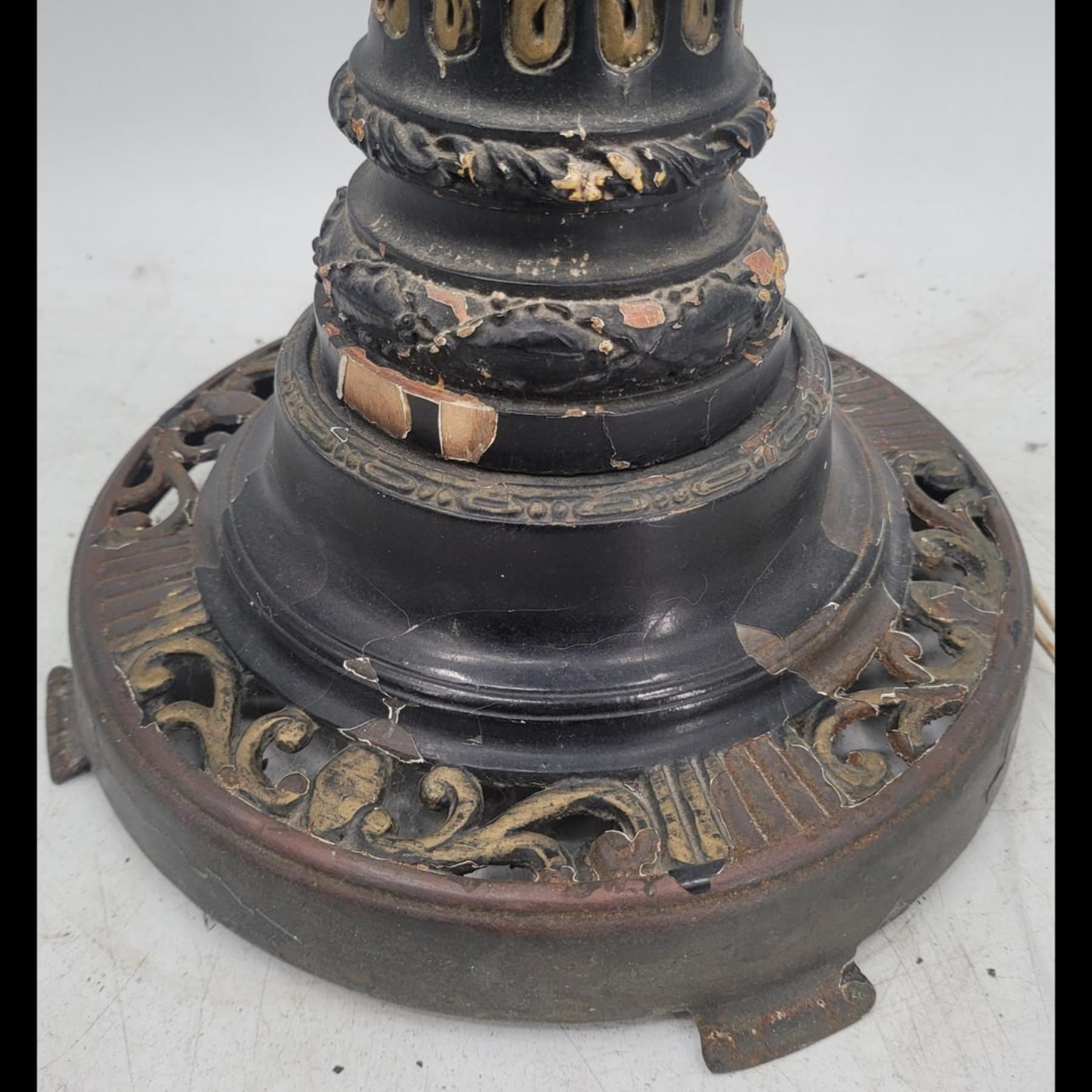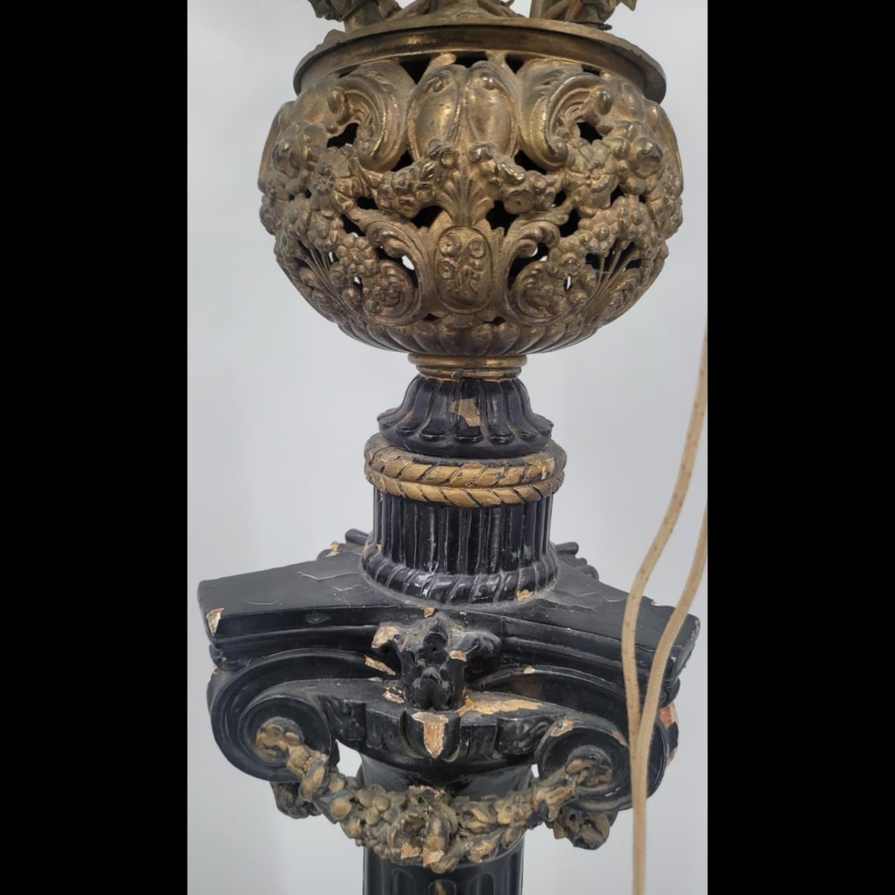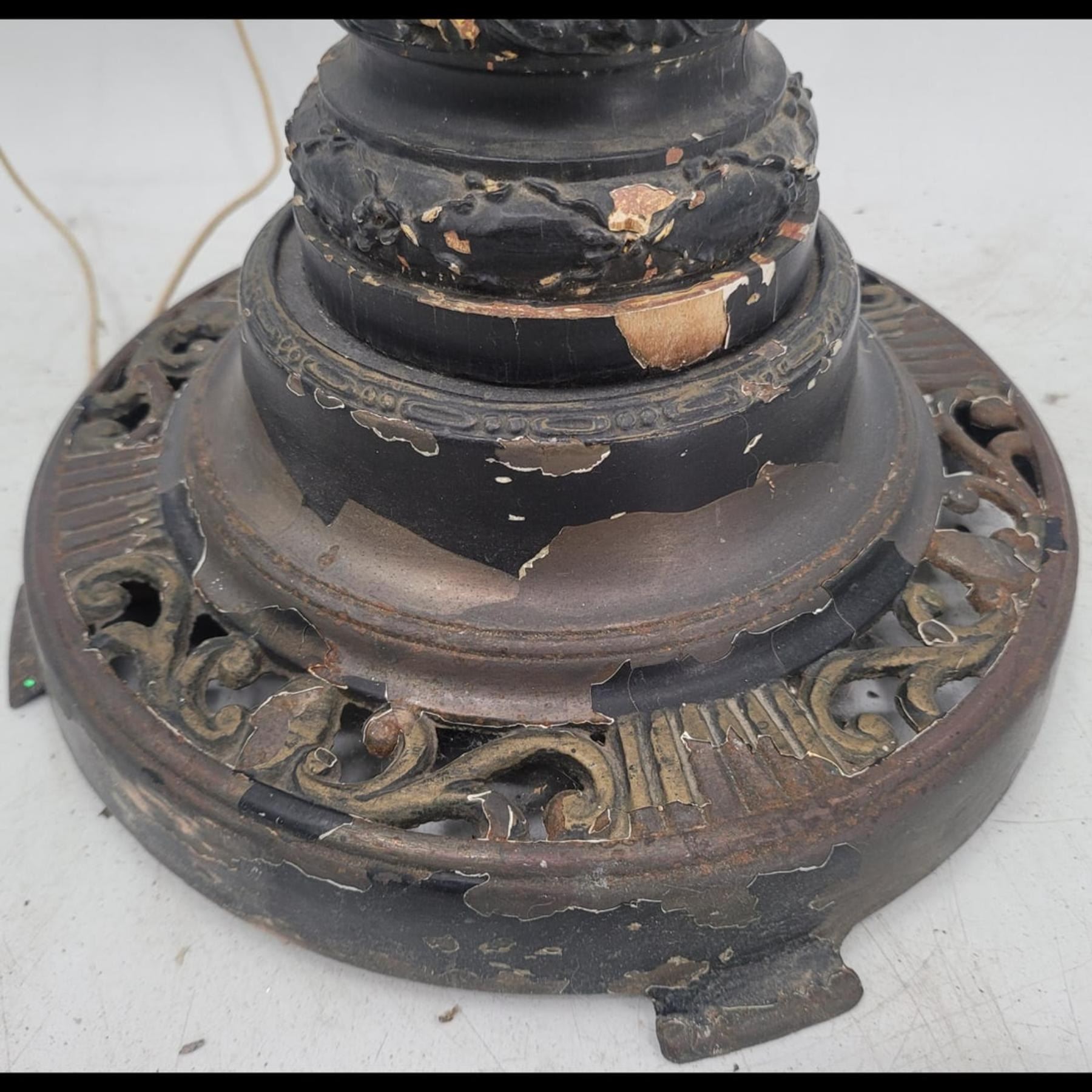 Vintage 5 Arm Floral Candelabra Style Standing Lamp. Lamp post paint is chipping, please see pictures. Some pieces that attach to the flowers are missing. Lamp measures approx. 63" X 21" X 21".