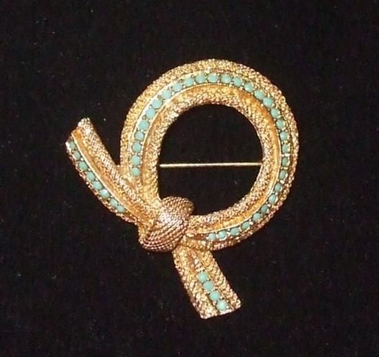 Vintage 50s - 60s Designer SPHINX #9660 Gold Turquoise Round Brooch, Round Goldtone ~ 1-1/4in Diameter, Turquoise Stones Marked on Back 9660, mwf1836