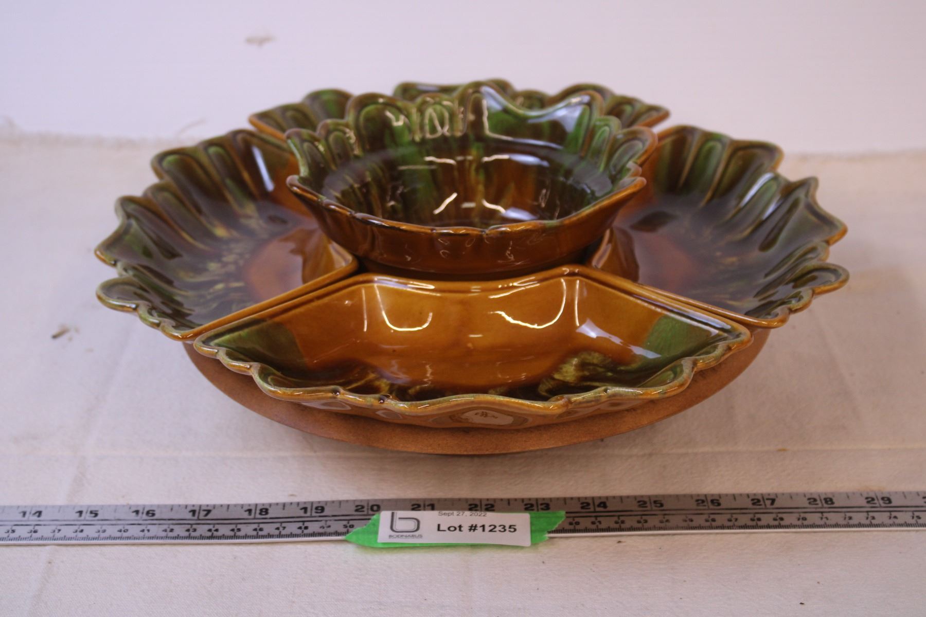 Vintage 6 Piece Lazy Susan/Chip and Dip Set (California Pottery)