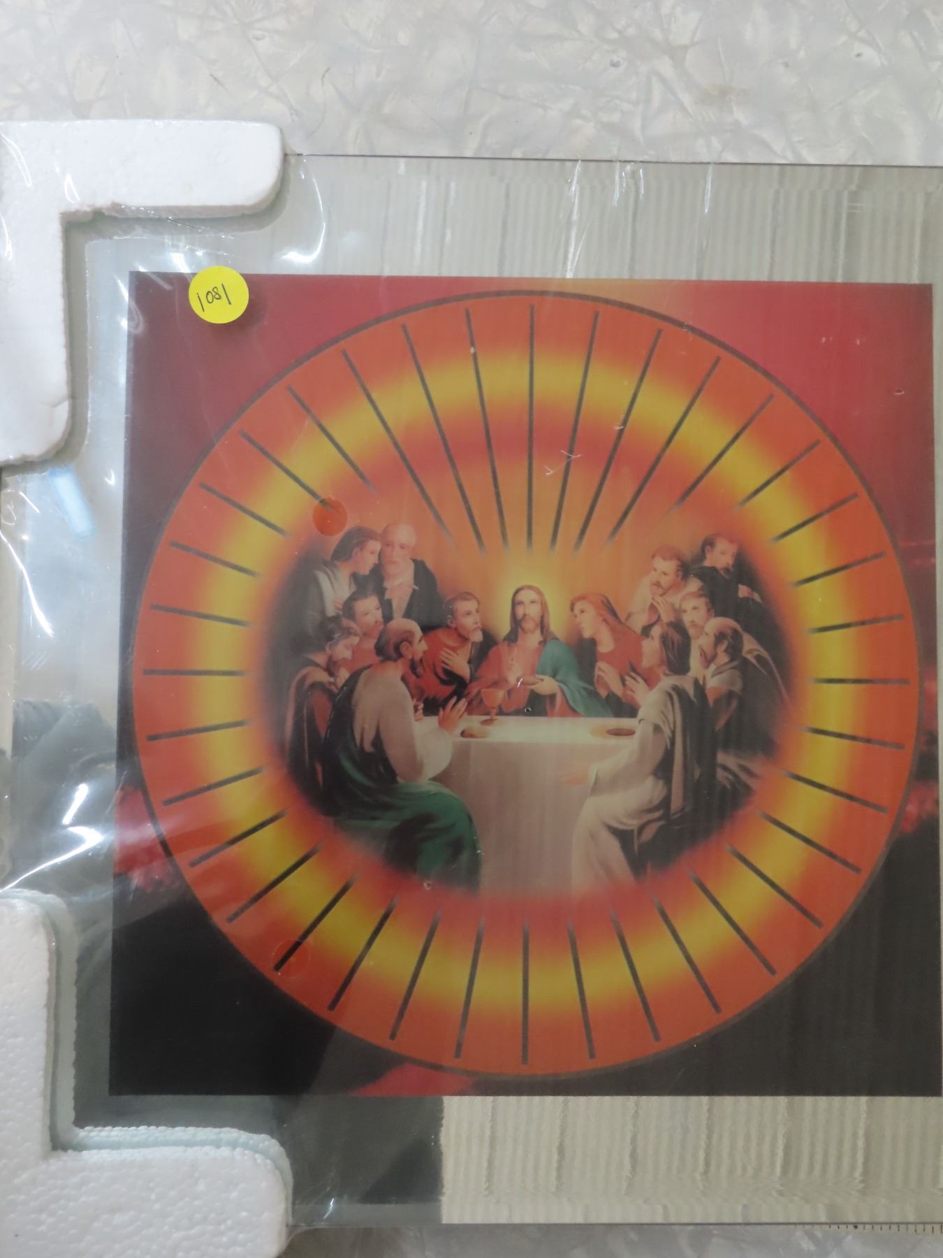 Vintage 60s spinning light up Jesus psychedelic last supper frame clock- 21"X13.5"