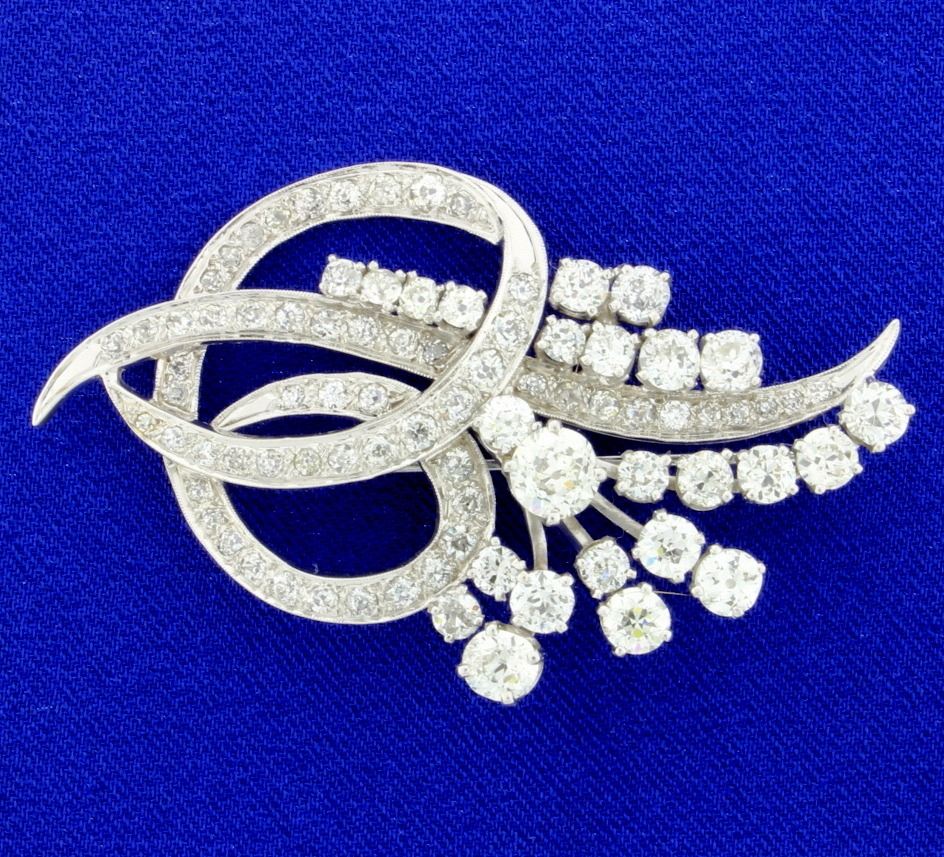 In 14K white gold, this pin contains 7cts of high quality diamonds ranging from .8ct to .01cts, all SI clarity/G to H color. Pin is 2 1/2 inches long. 14.8g