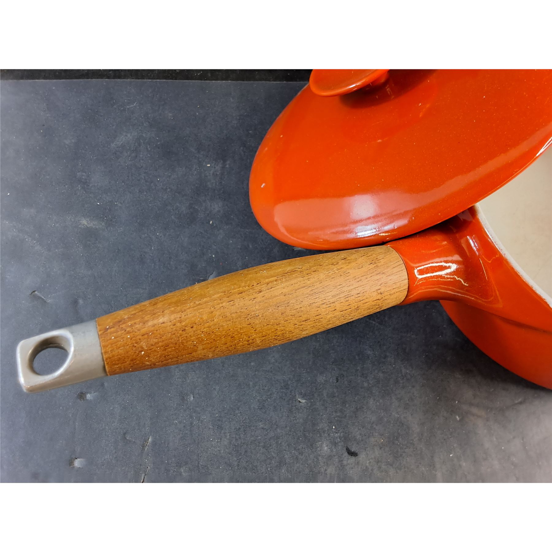 Vintage 8  Copco Enamel Cast Iron Sauce Pot with Lid - Teak Handle