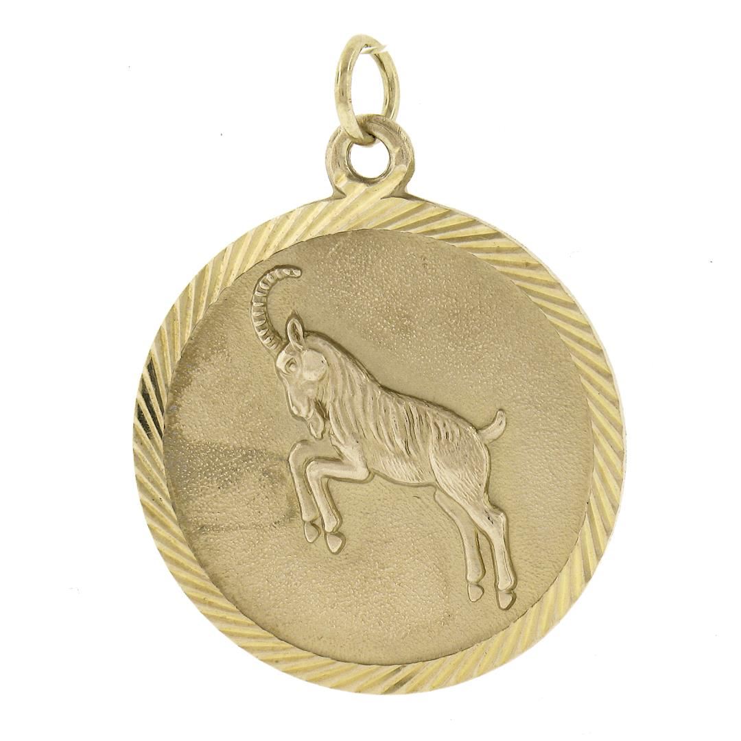 a vintage solid 9k yellow gold medallion pendant. The pendant weighs a total of 4 grams, measures 29.6x22.7mm including the bail, and the inside of the bail measures 2x3.4mm.