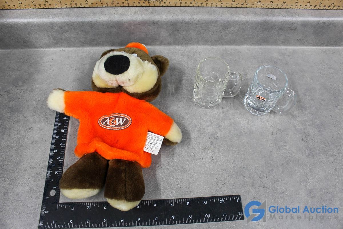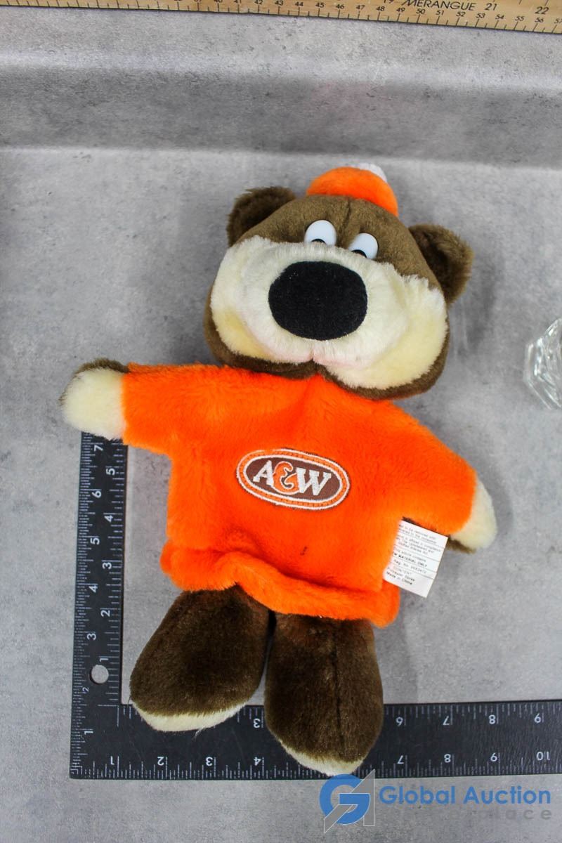 Vintage A&W Root-Bear Hand Puppet and (2) Mini Glass Mugs