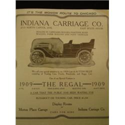 Vintage auto advertisements in Opera Magazine. 1909-1911 inside programs for English's Opera House. Includes 1909 Regal of the Indiana Carriage Co. 1911 Chalmers, 1911 Studebaker Electric Landaulet, Baker Electrics of the Fisher Auto Co. the Waverley Co., etc. Also has train schedules.