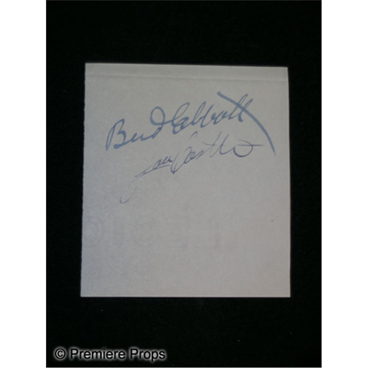 Purchased in a Hollywood estate sale, this cut features the autographs of silver screen William “Bud” Abbot and Lou Costello! Paper shows signs of discoloration and aging. Size is 3.75 x 3.25.