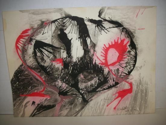 Vintage Abstract. Gouache on Paper. Size: 10 1/4 x 14. Signed/Dated: "V. Wicht 64" (lower right). Art needs matting and frame. Art was acquired without history or documentation. Art remains in excellent condition. Please research and bid accordingly. Art is being sold "as-is" with all sales final.