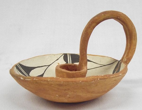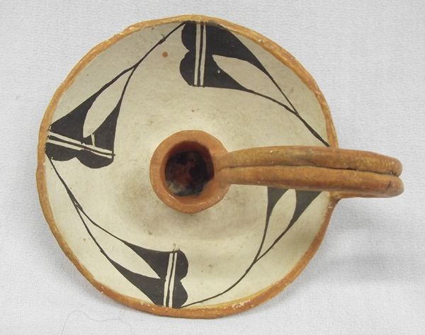 Vintage Acoma Candleholder, features traditional black and white Acoma designs, measures 3.25''H x 4.25''W
