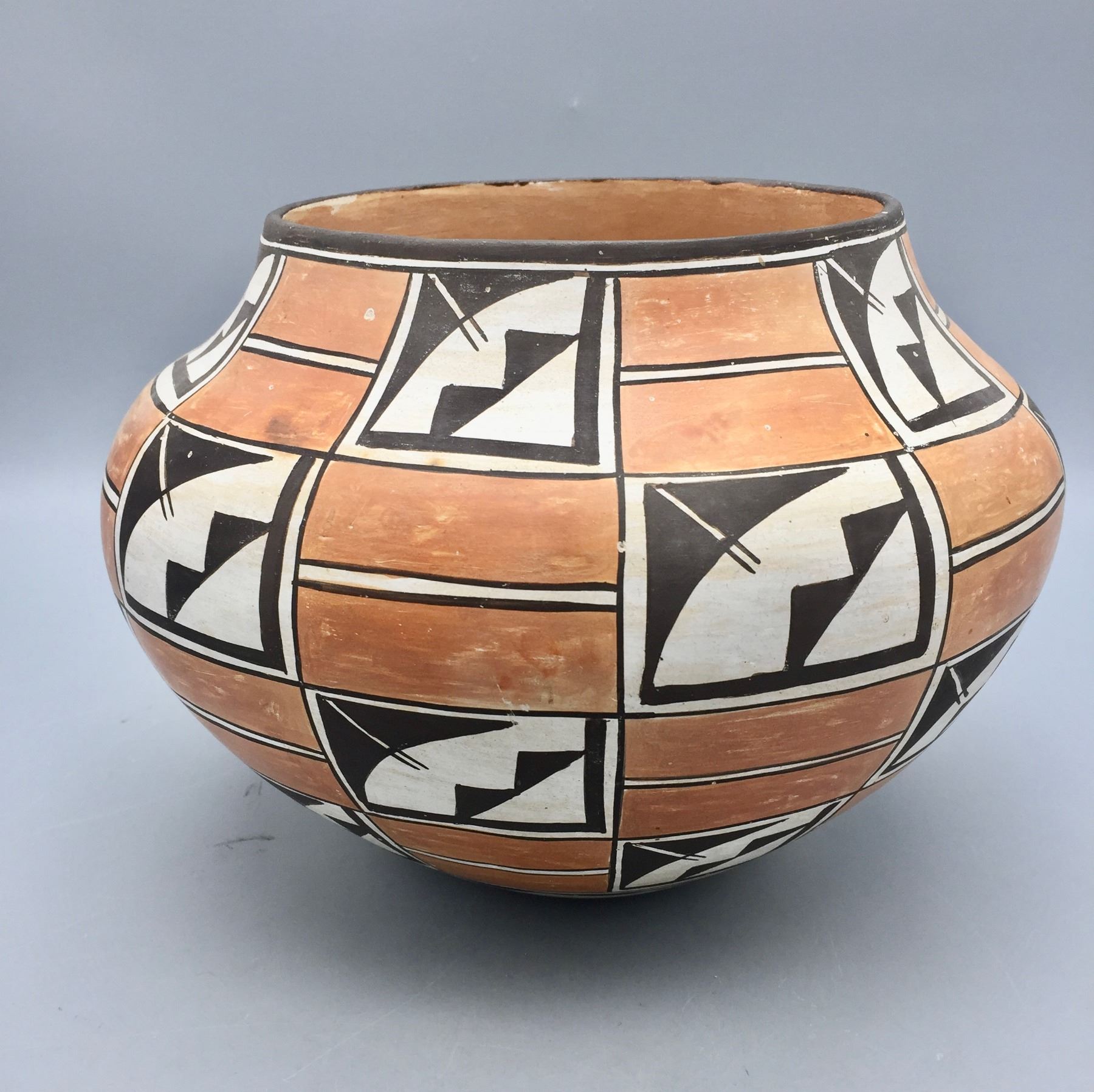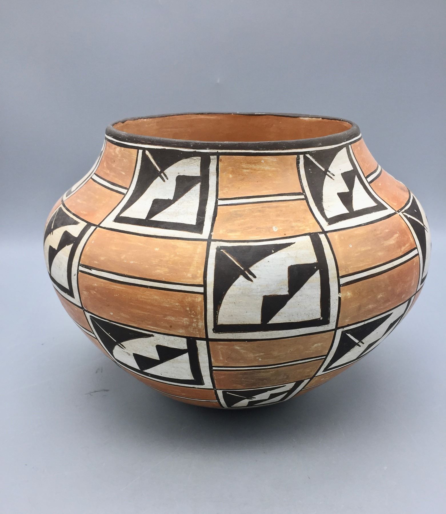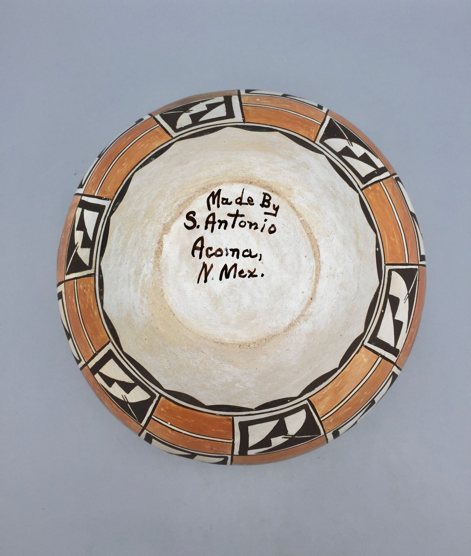 Description: For sale in this lot is a gorgeous, handmade and hand painted vintage Acoma pot.                                                                                                              Maker: S. Antonio, Acoma, New Mexico.                                                                                                                  Approx. Age: Vintage.                                                                                                            Size: 9-1/2”w x 7” tall.                                                                                                                                                                                                                                 Condition: Good for its age, normal wear expected.                                                                                                                Please look closely at the pictures - they are an important part of our description.                                Shipping: There will be a $10 handling / packaging fee for shipping this lot. The actual cost of postage will be added on top of that.