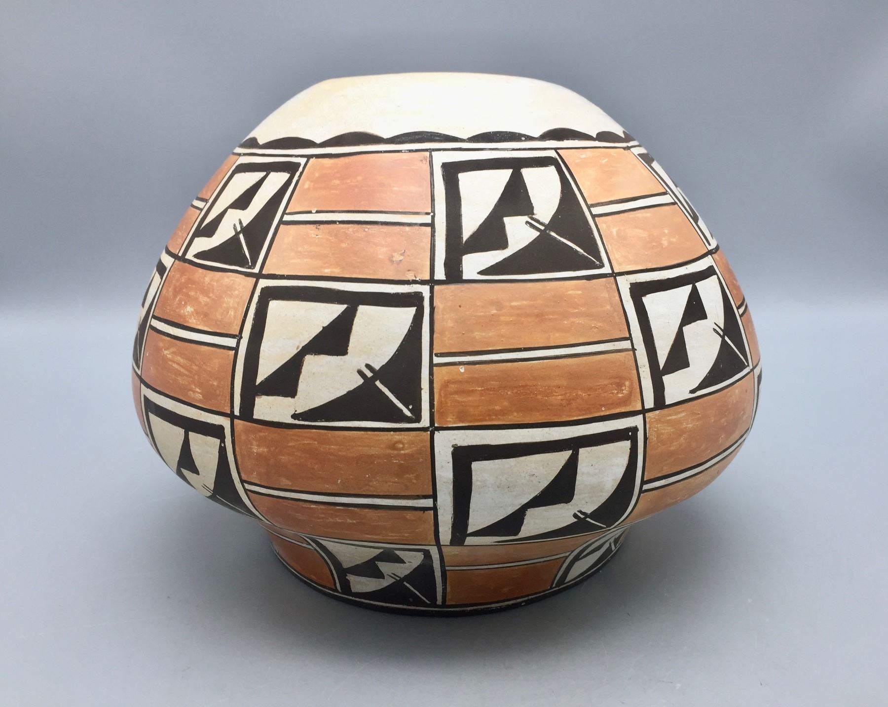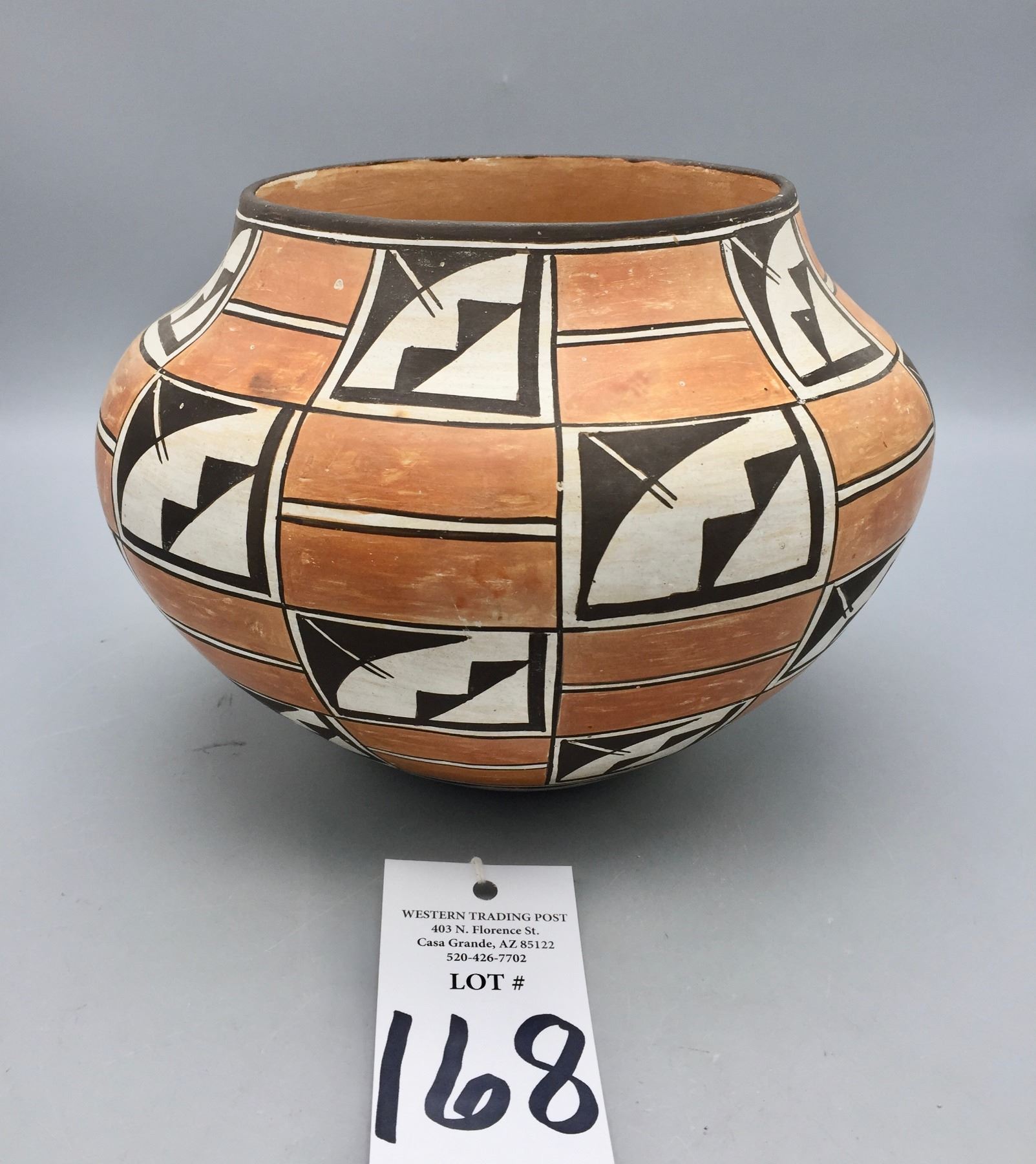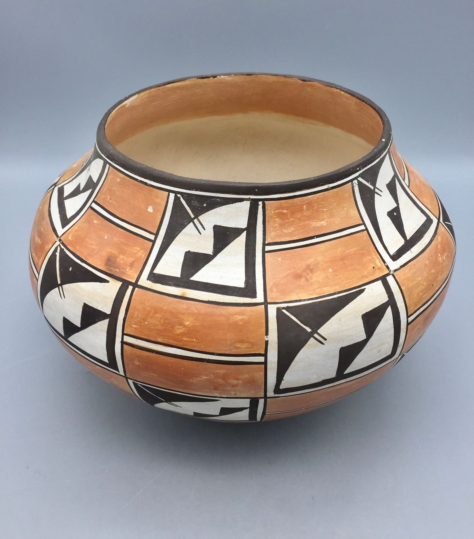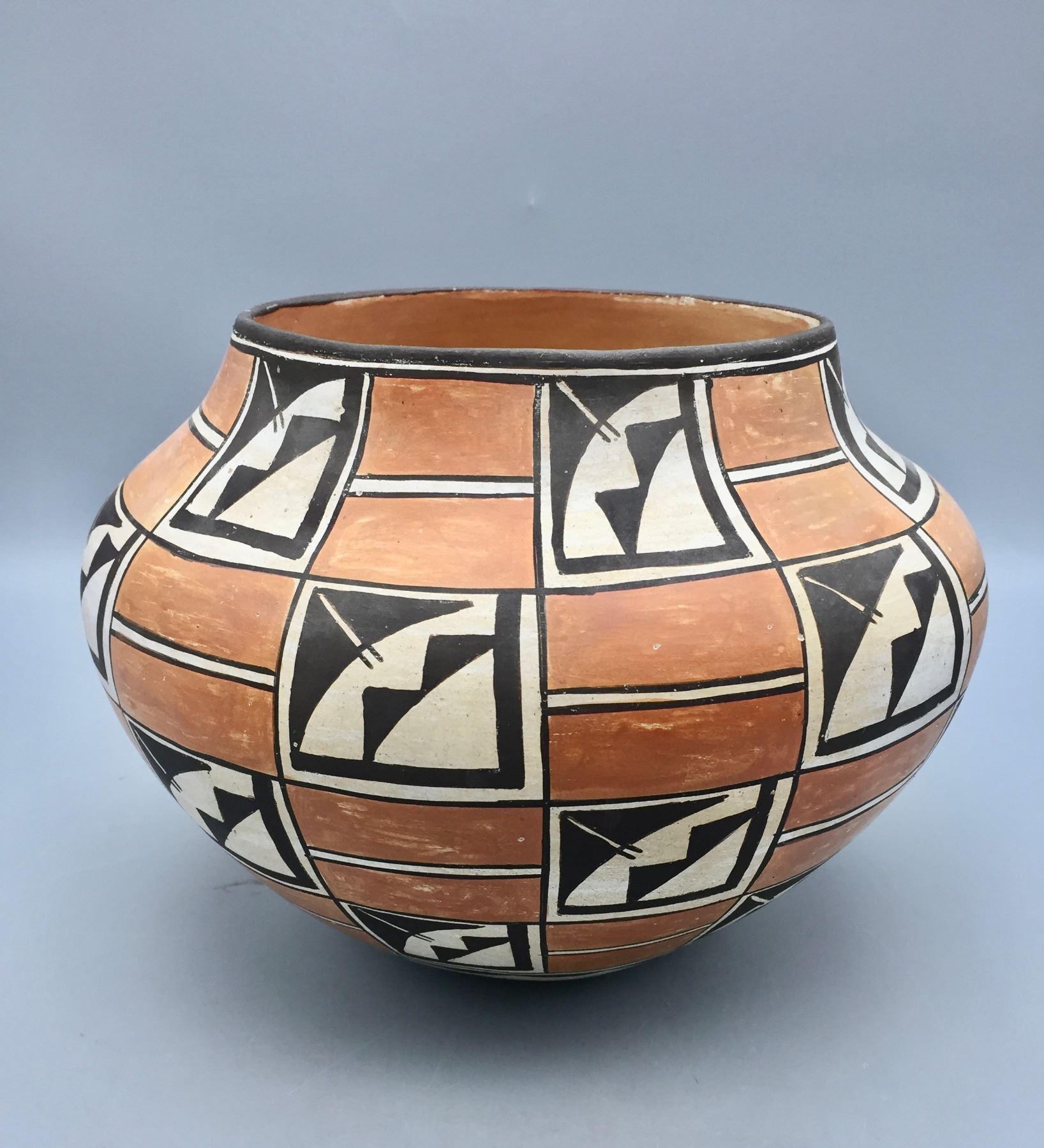Description: For sale in this lot is a gorgeous, handmade and hand painted vintage Acoma pot.                                                                                                              Maker: S. Antonio, Acoma, New Mexico.                                                                                                                  Approx. Age: Vintage.                                                                                                            Size: 9-1/2”w x 7” tall.                                                                                                                                                                                                                                 Condition: Good for its age, normal wear expected.                                                                                                                Please look closely at the pictures - they are an important part of our description.                                Shipping: There will be a $10 handling / packaging fee for shipping this lot. The actual cost of postage will be added on top of that.